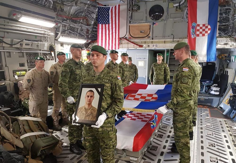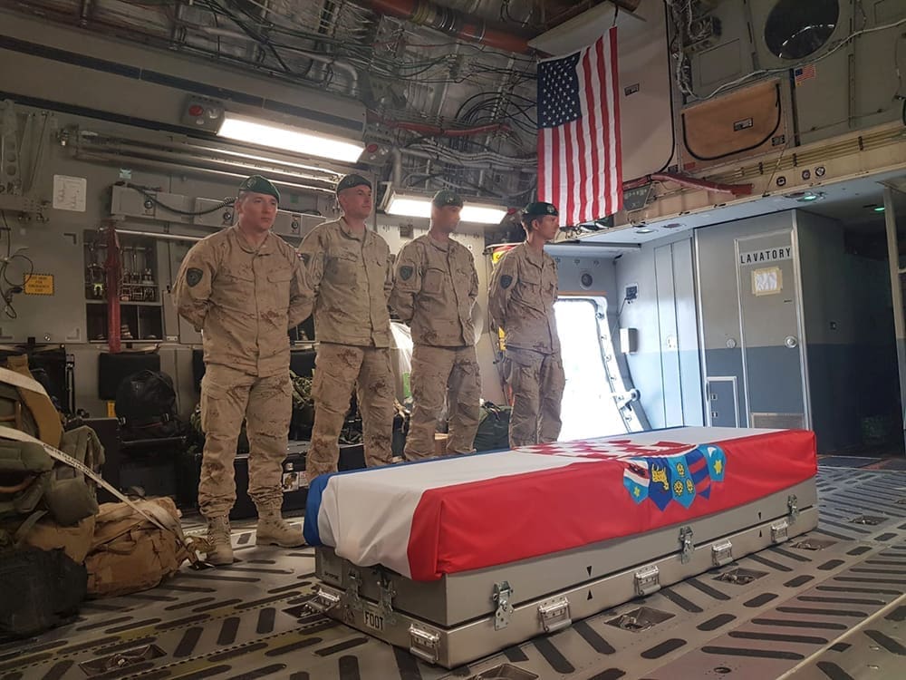 Američki zrakoplov u noćnim satima poletio je iz Bagrama u Afganistanu, a ispratio ga je zapovjednik NATO misije “Resolute Support” general Austin Scott Miller, čime je stradalom hrvatskom vojniku iskazana najveća počast.