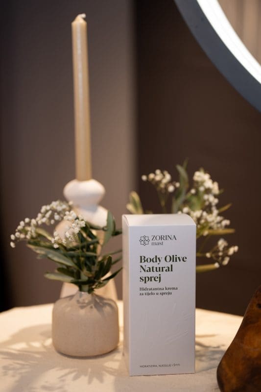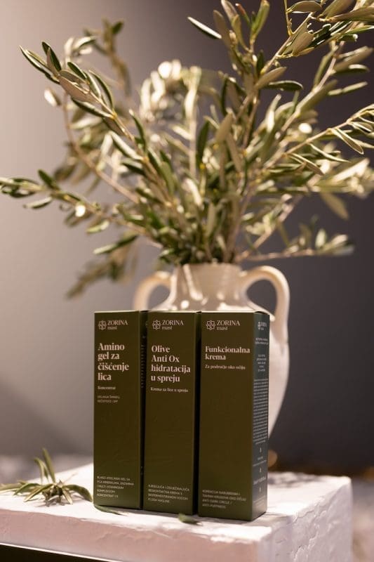 Upravo na tom tragu, tim Zorine masti je osmislio, proizveo i predstavio najnoviju liniju Maslina inspiriranu upravo hraniteljicom i kraljicom Mediterana, simbolom snage, gracioznosti i dugovječnosti. Ova linija koja slavi zdravlje, ljepotu i ženstvenost, donosi šest inovativnih proizvoda koji su dostatni za kompletnu njegu kože lica i tijela s ciljem dubinske hidratacije, trajne obnove i postizanja anti-aging učinka. Riječ je o Olive Anti Ox kremi za lice u spreju, Amino gelu za čišćenje lica, Funkcionalnoj kremi za područje oko očiju, Body Olive hidratantnoj kremi za tijelo te dva revolucionarna Mehaničko metabolička pilinga za tijelo koji uklanjanjaju mrtve stanice s površine kože i aktiviraju metaboličke procese u koži čineći je zdravom, nahranjenom i elastičnom. Svi proizvodi sadrže jedinstveni biofermentirani hidrolat masline, biološki nusproizvod s nevjerojatnim klinički dokazanim učincima na zdravlje i pomlađivanje kože.