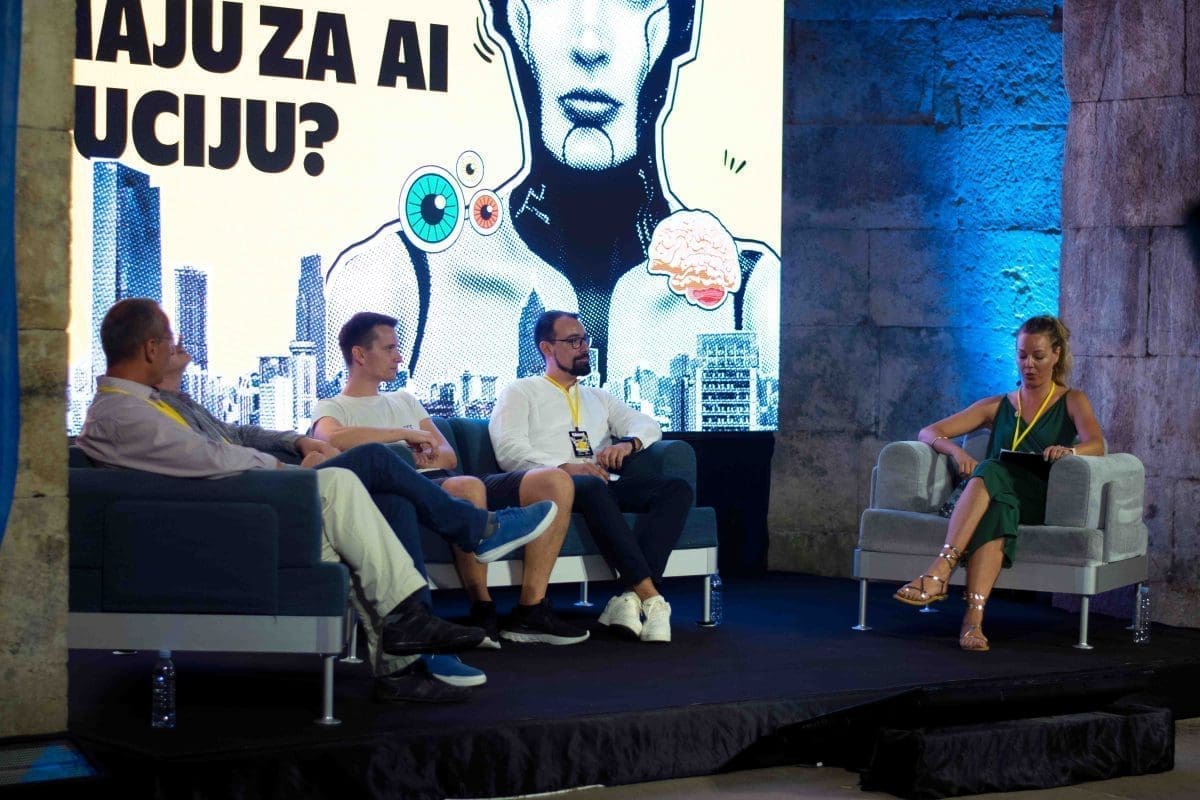 Ubrzo je uslijedila i druga panel rasprava - Kako se domaće firme spremaju za AI revoluciju. O tome su diskutirali Mario Frančešević (SeekandHit), Davor Aničić (Velebit AI), Davor Runje (Airt), Ivan Biliškov (Codeasy), a raspravu je vodila Pinija Poljaković (Art Media).