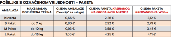 Ipak, u Tisku su odlučili promijeniti cjenik ove usluge. Naime, porast će cijena paketa, ali i ambalaže, neovisno o njegovoj veličini. Uz poskupljenje paketa, uvedeno je i izjednačavanje cijene za kreiranje pošiljke na internetu i na kiosku.