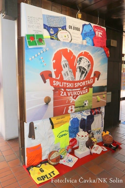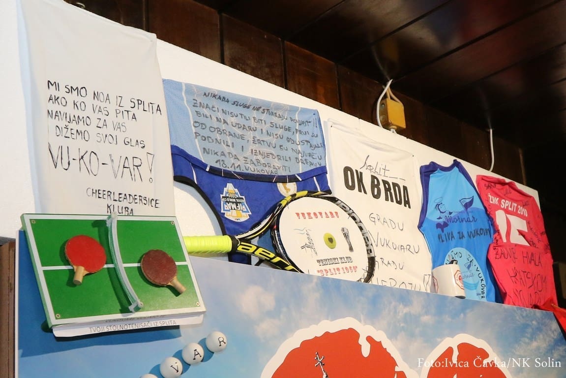 Posebnu pozornost i divljenje plijenio je zid u SC Gripe "Splitski sportaši za Vukovar" na kojem su izloženi predmeti koje su splitski klubovi i sportaši poklonili gradu heroju.