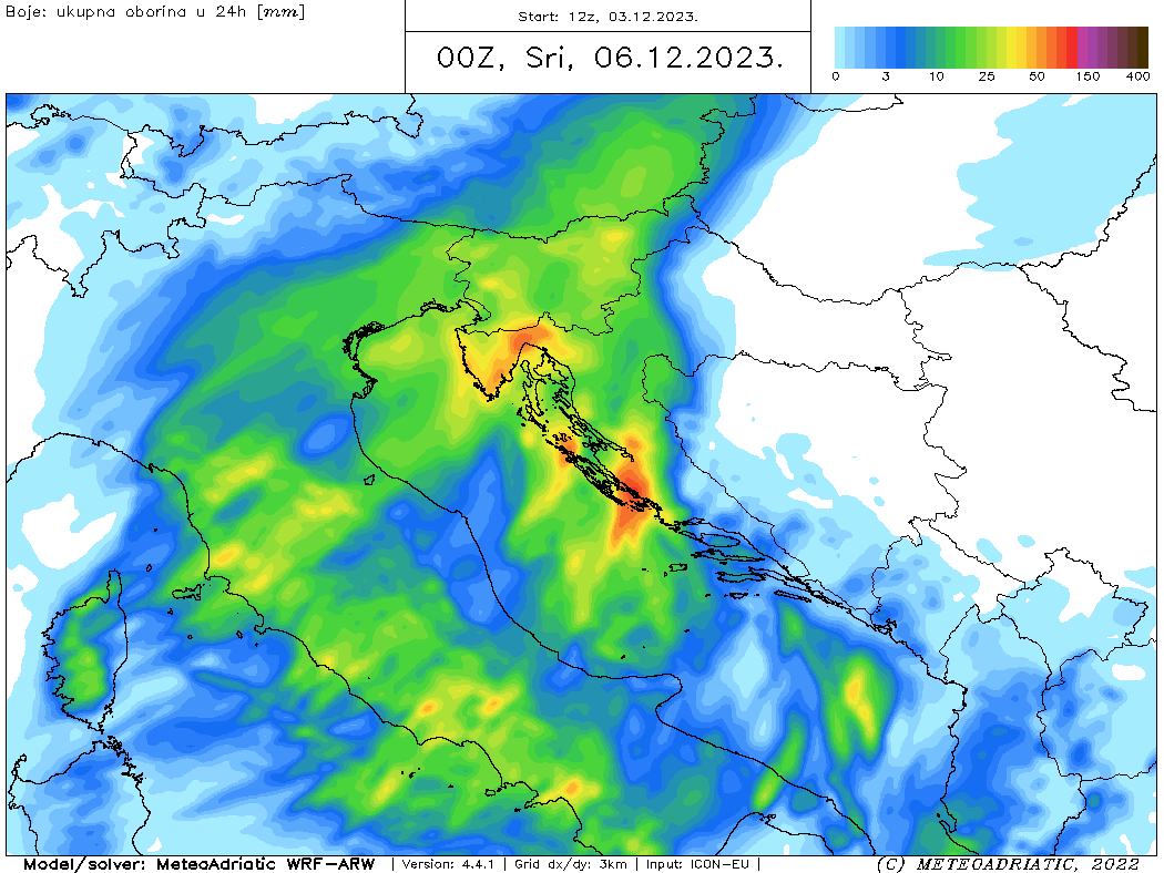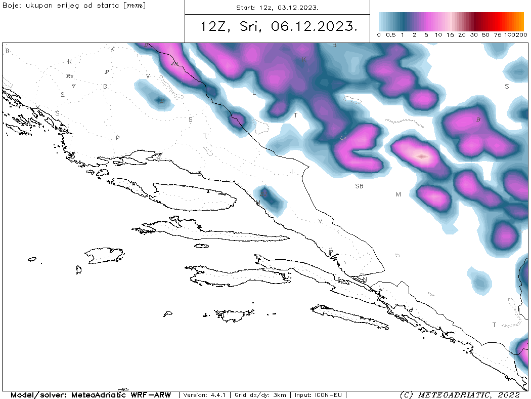 Srijeda će još u prvom dijelu dana biti oblačna. Osobito u noći kiša, pljuskovi i grmljavina, a iznad 1000 metara past će preko 10 centimetara snijega. Već od jutra prestanak oborina, a od sredine dana i razvedravanja sa zapada. Oblačno, povremeno uz kišu zadržat će se cijeli dan isključivo južnije od Dubrovnika. Zapuhat će slaba bura. Najviše dnevne temperature od 7 do 14.°C.
