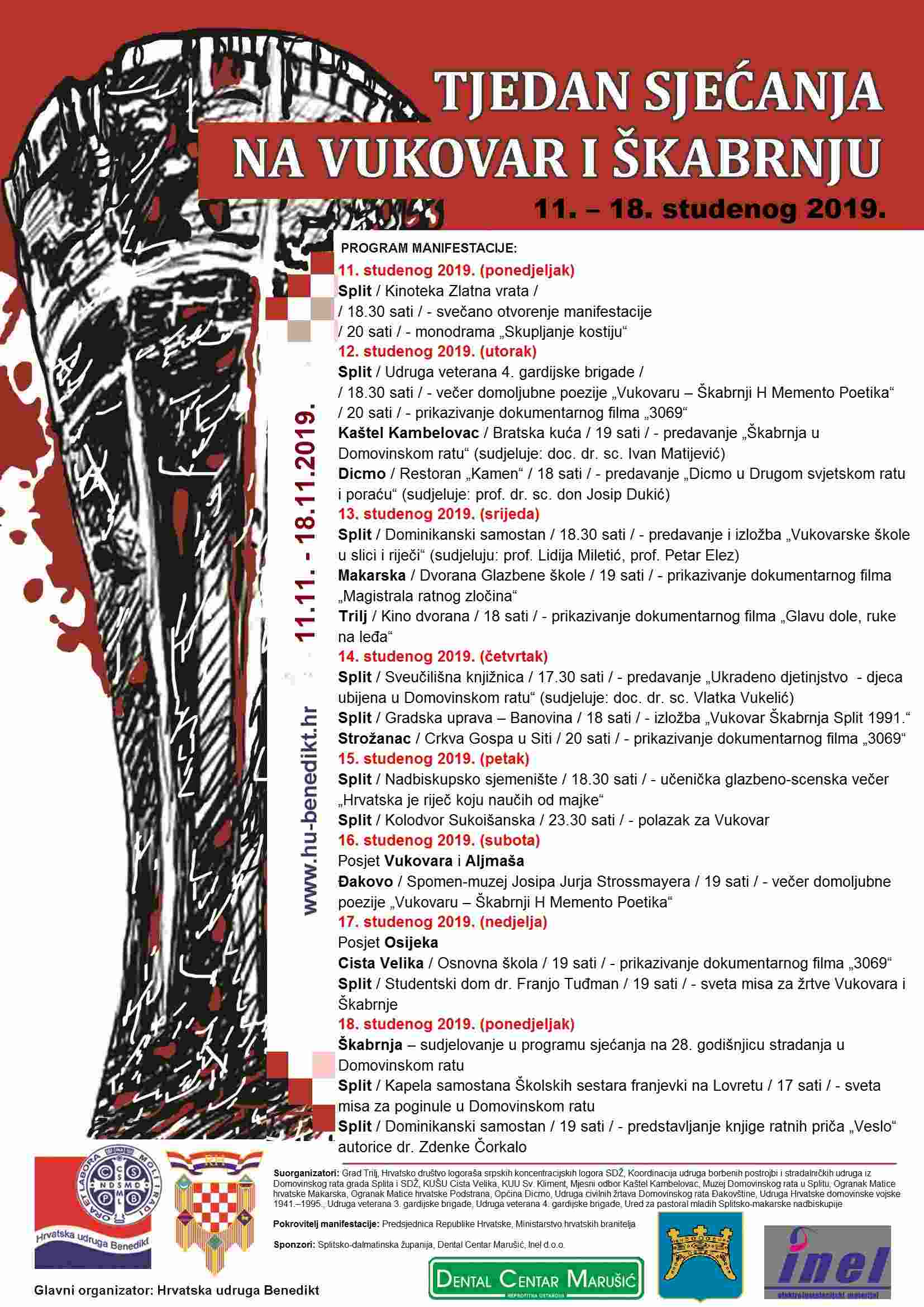 Kulturno-društvenu manifestaciju 'Tjedan sjećanja na Vukovar i Škabrnju' Hrvatska udruga Benedikt organizira u Splitu i okolnim gradovima i općinama osmu godinu zaredom.