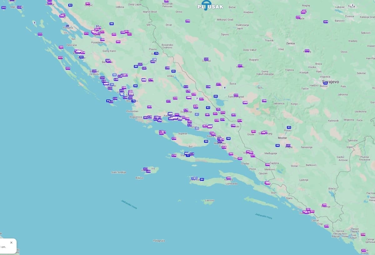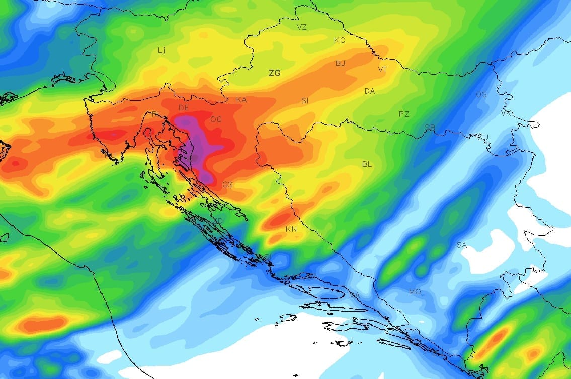 Četvrtak će biti oblačan uz čestu kišu, bit će i pljuskova s grmljavinom. Mjestimice će pasti preko 50 litara kiše po metru kvadratnome. U sjevernom Dalmaciji puhat će bura, a južnije od Splita umjereno do jako jugo. U većini predjela bit će toplo, na sjeveru Dalmacije umjeren pad temperature zraka.