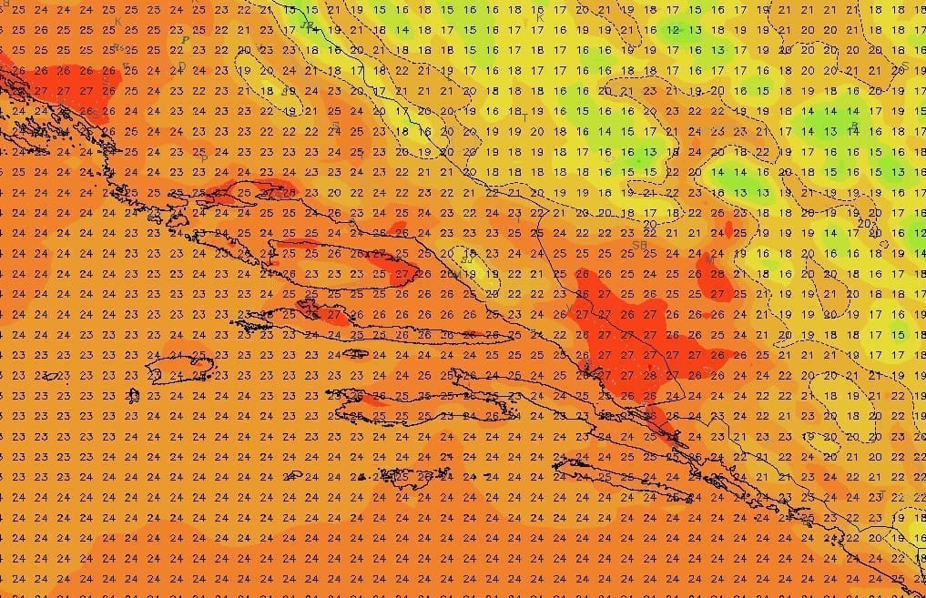 Jučerašnji dan donio je nastavak natprosječne topline. Primjerice, u Splitu je najviša dnevna temperatura bila 28°C. Iako je veći dio Dalmacije bio suh, mjestimice je bilo nevera, primjerice, u trogirskom zaleđu.