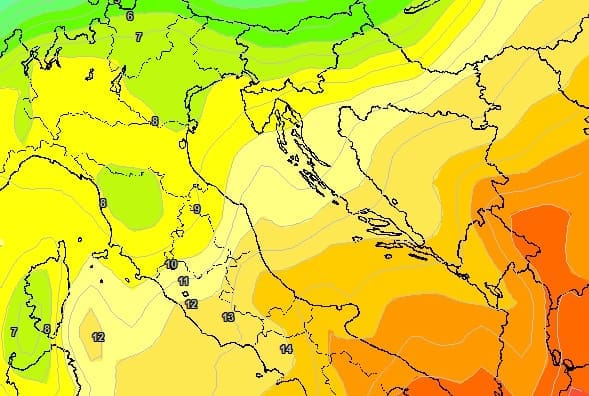 Pretežno sunčano, sparno i vrlo toplo bit će u petak. Puhat će umjereno do jako jugo. Najviše dnevne temperature od 24 do 29°C.