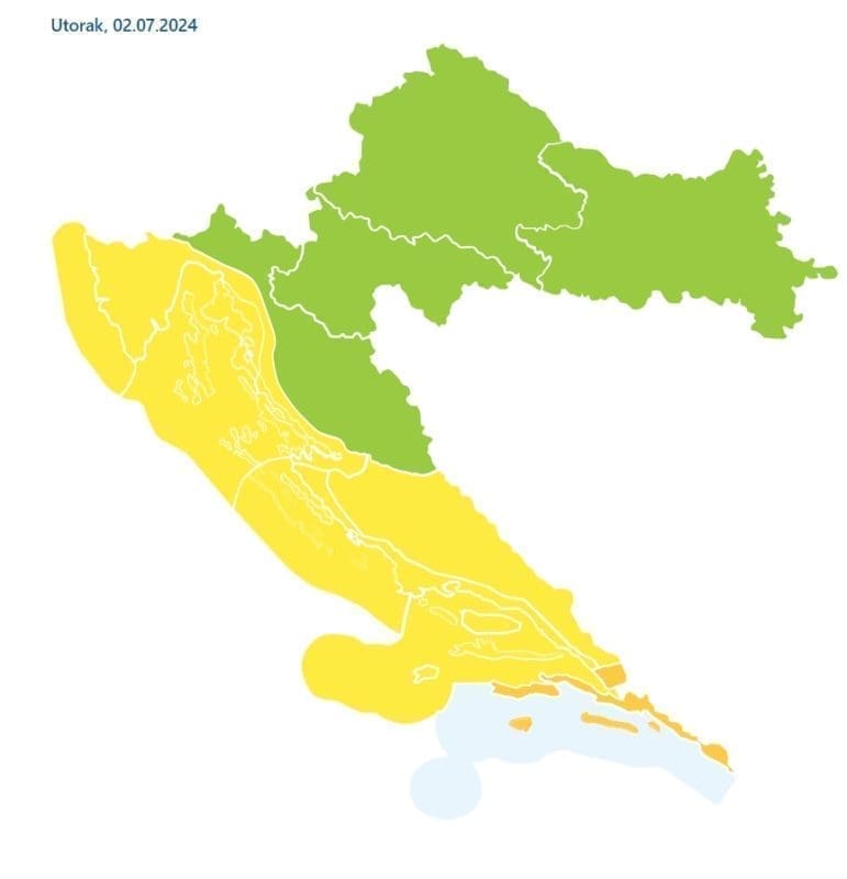 DHMZ je unutar sustava MeteoAlarm za Dalmaciju izdao žuto, a za jug i narančasto upozorenje zbog mogućnosti nevremena.