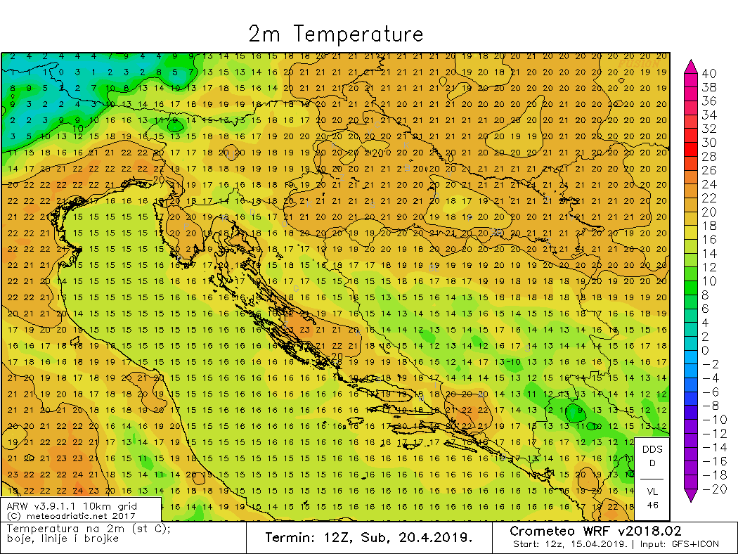 U dane vikenda zadržat će se pretežno sunčano, suho i toplo. U subotu bi temperature mogle dosezati visoka 24°C. Slično i u nedjelju (Uskrs). U drugom dijelu dana zapuhat će slabo jugo kao uvod u moguću promjenu vremena na Uskrsni ponedjeljak. Ostvare li se današnje prognostičke karte, stižu nam olujno jugo i nova kiša.