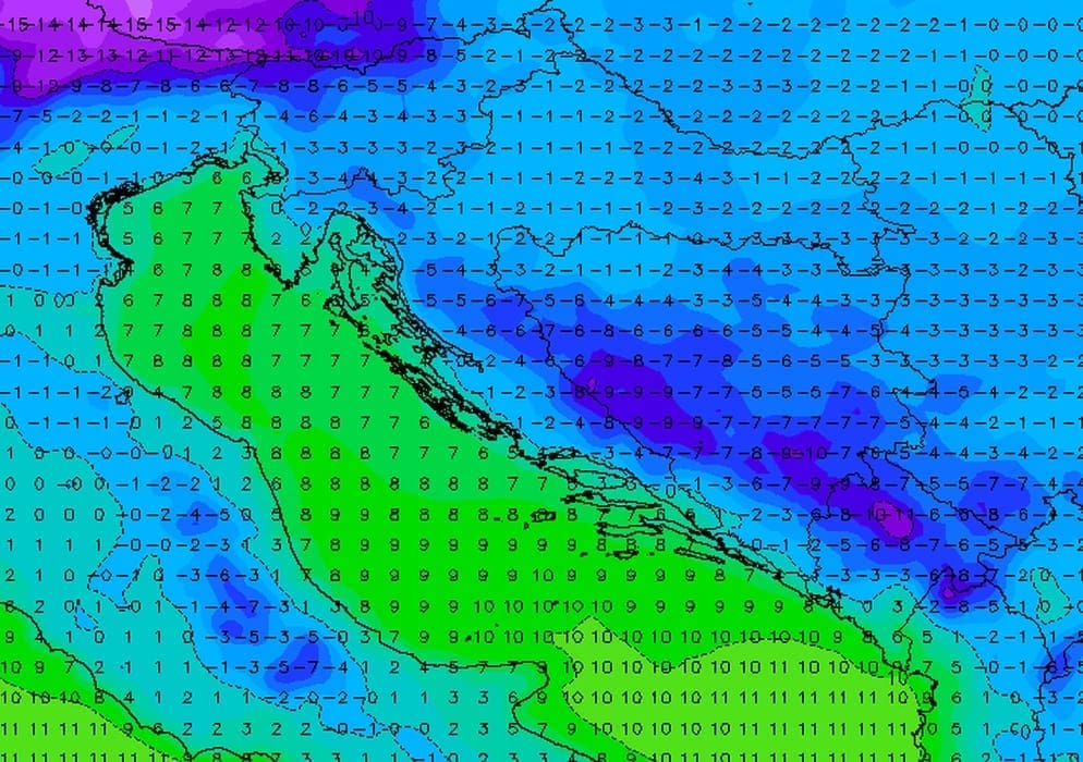 U utorak smirivanje vremena. Još je samo na jugu Dalmacije u noći moguće malo kiše, danju će posvuda biti djelomično sunčano i suho. Umjerena do jaka bura i tramontana puhat će do jutra, a danju će vjetar značajno oslabiti. Jutro i večer će biti hladni, ponegdje je u Zagori moguć slab mraz. Najviše dnevne temperature većinom od 5 do 12°C.