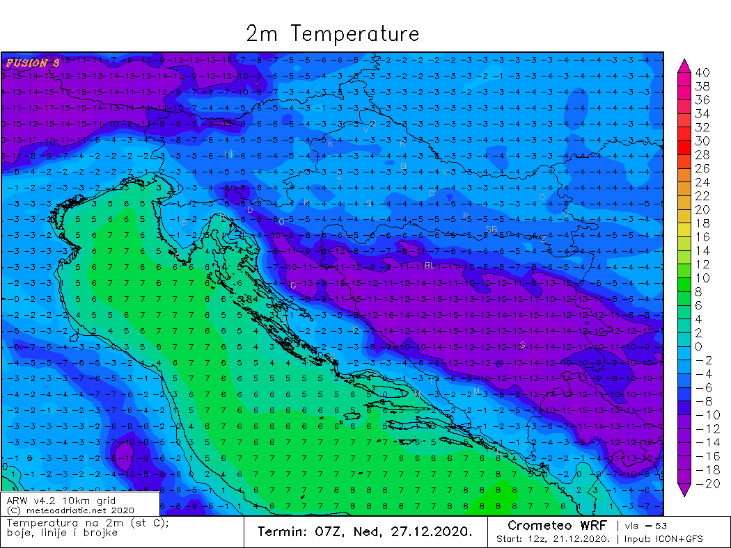 Vikend donosi zimske temperature zraka! U subotu će biti promjenjivo, osobito u prvom dijelu dana kada će uz obalu i na otocima dalje povremeno biti kiše, u Zagori kiše i snijega. U Zagori se stvaranje snježnog pokrivača očekuje u nekim predjelima iznad 600 metara nadmorske visine. Oborine će tijekom dana slabiti i prestati, prvo na sjeveru Dalmacije. Puhat će umjerena do jaka bura, u drugom dijelu dana će biti i olujnih udara. Bit će osjetno hladnije u odnosu na prethodne dane. Sredinom dana bit će od 0°C ponegdje u Zagori do 10°C na vanjskim otocima.