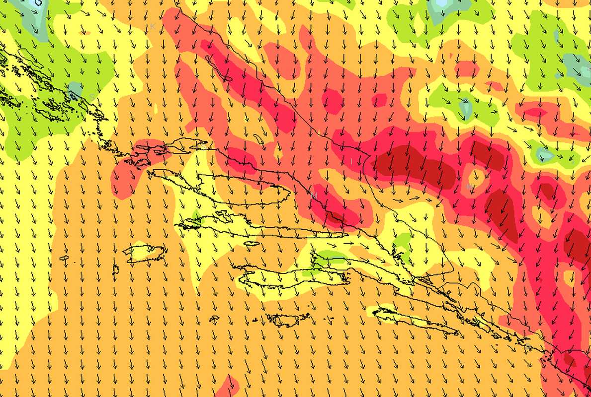 Umjereno jugo i pad tlaka zraka nagovještaj su skore promjene koju ćemo najviše osjetiti krajem ponedjeljka i u noći na utorak. Preko Jadrana će se u ponedjeljak premještati frontalni poremećaj, a nad Jadranom će se formirati plitka ciklona koja će vrlo brzo odmaknuti dalje prema Grčkoj.