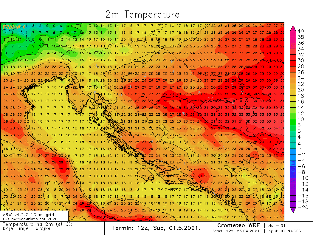 Prema današnjim prognostičkim materijalima, čini se da će veći dio prazničke subote biti pretežno sunčan i suh. Ipak, rano ujutro je ponegdje još moguće malo kiše. Ujutro pojačano jugo, oslabit će krajem dana. Toplije s najvišim dnevnim temperaturama od 21 do 27°C.