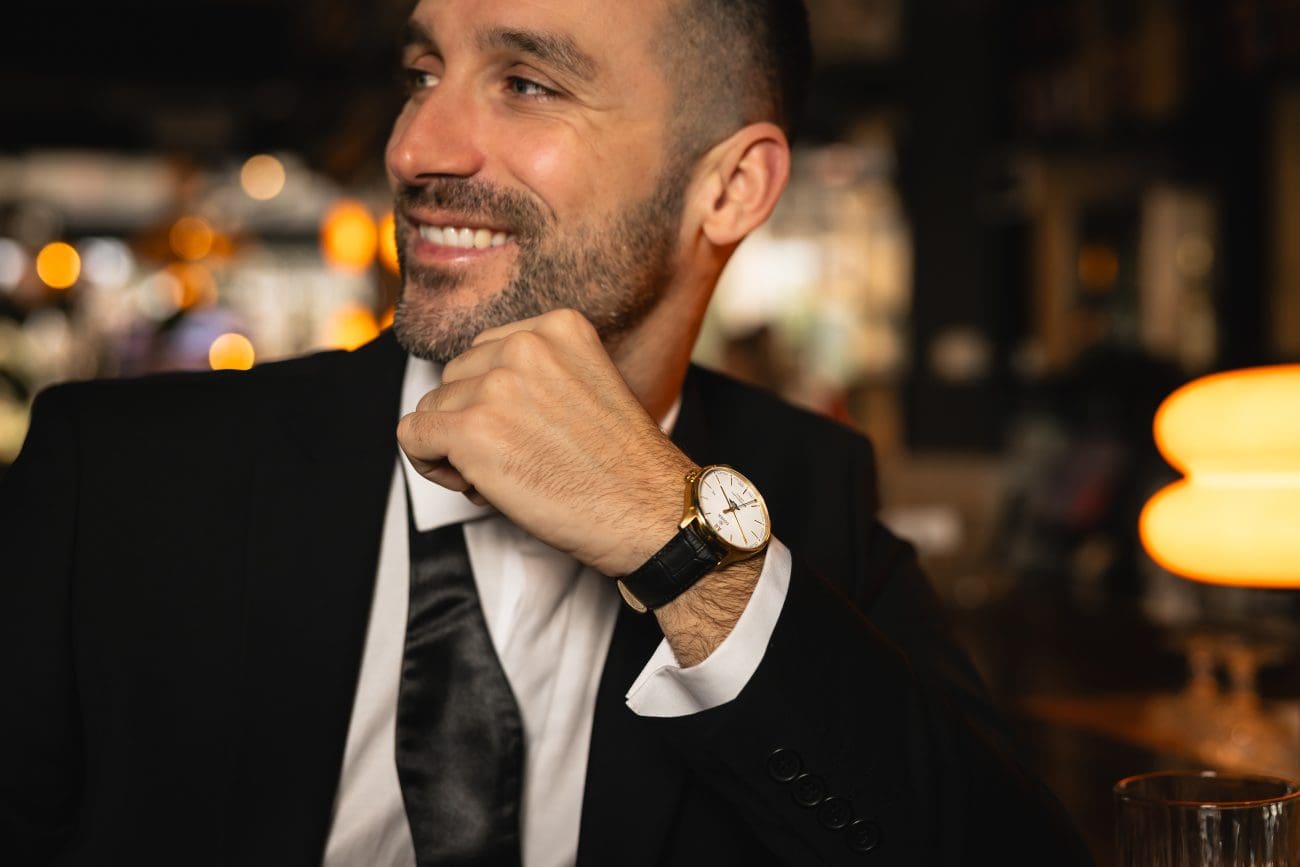 Uz nju, on nosi *Veštit* odijelo, precizno krojeno i besprijekorno strukturirano. Riječ je o onoj vrsti elegancije koja ne traži pažnju, ali je uvijek dobije. Minimalizam, kvaliteta i stav – kombinacija koja nikada ne izlazi iz mode.