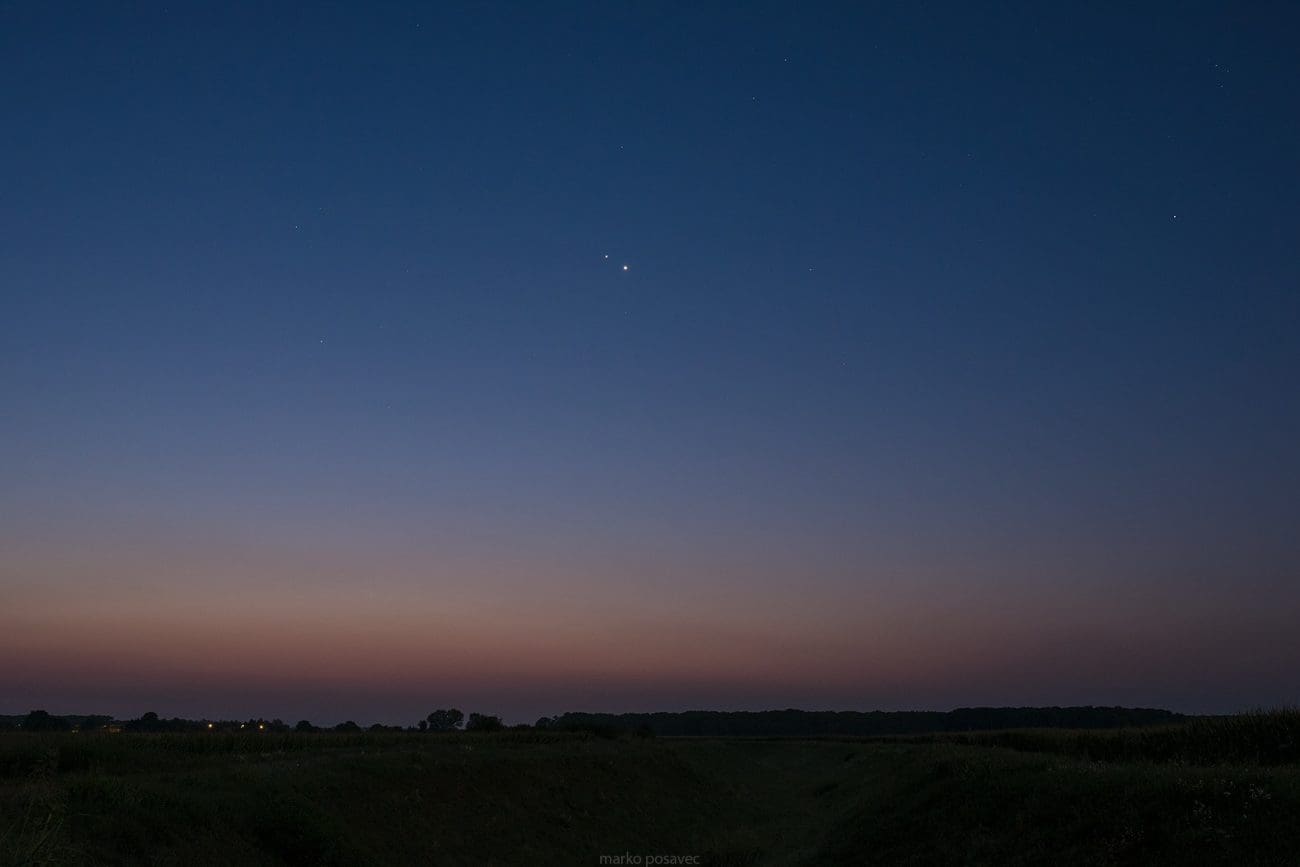 Jutros, u ranim satima, nebo nad Hrvatskom priredilo je pravi astronomski spektakl. Venera i Jupiter našli su se u prekrasnoj konjunkciji, vidljivoj već od oko 3 sata ujutro, a najbolji prizor pružali su između 4:00 i 4:30. Na udaljenosti ispružene ruke, dva planeta bili su toliko blizu da se između njih nije moglo “ugurati” ni dva podignuta mala prsta – osim, kako se u šali kaže, ako imate vrlo sitne prste.