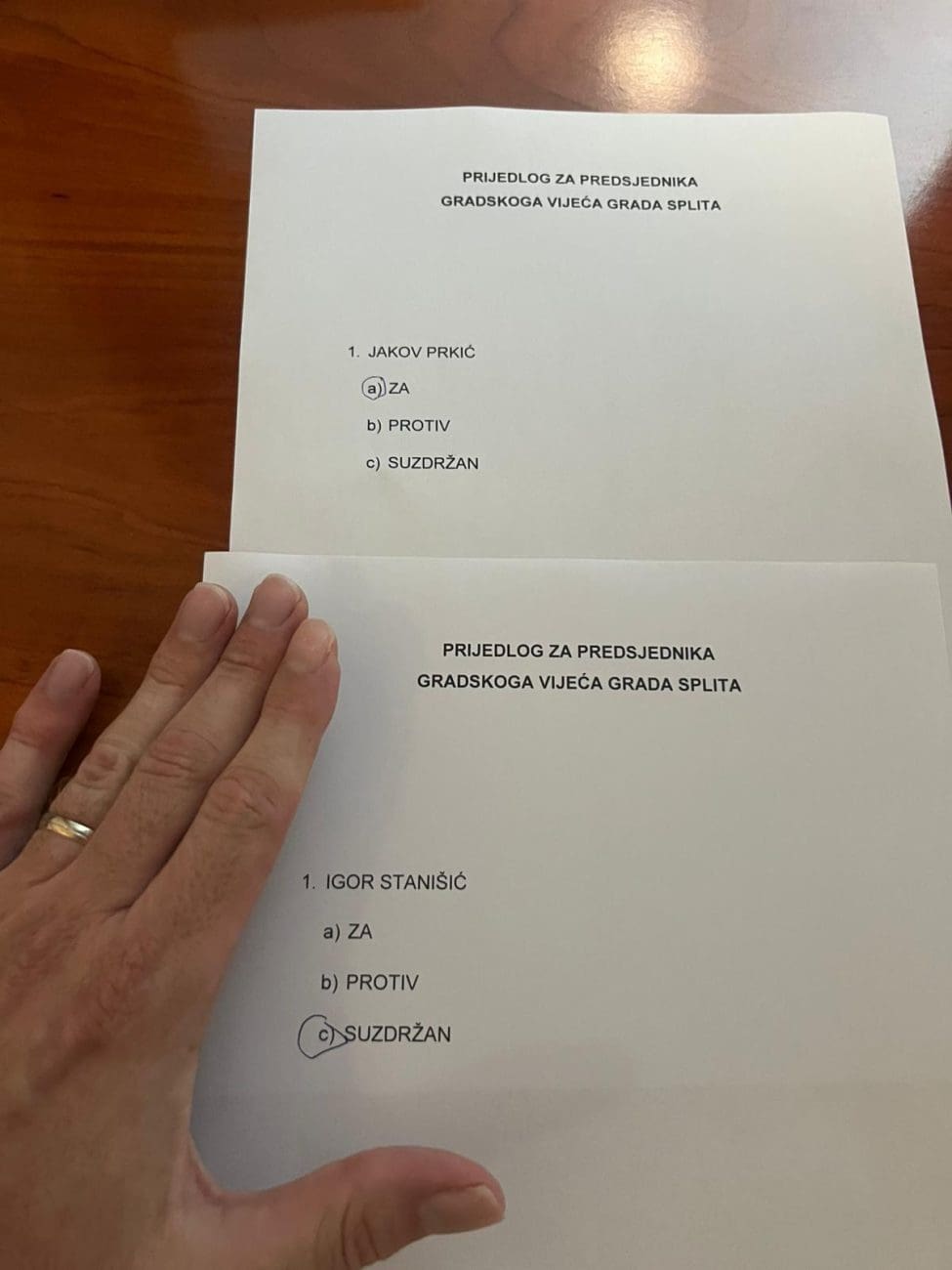 „Nitko od vijećnika Centra danas nije podržao Igora Stanišića. Svih 11 naših vijećnika, koji su i u proteklom mandatu bili složni u borbi za javni interes, i danas su bili na pravoj strani povijesti. Imamo 11 fotografija, s 11 glasova za Jakova Prkića, za kojeg vjerujemo da je u ovom trenutku najbolje rješenje za predsjednika Gradskog vijeća, bez ijednog glasa za Stanišića“, rekao je Skoko, dodajući da je ostalo otvoreno samo jedno pitanje, na koje odgovor znaju Tomislav Šuta i jedan "oporbeni" vijećnik ili vijećnica.