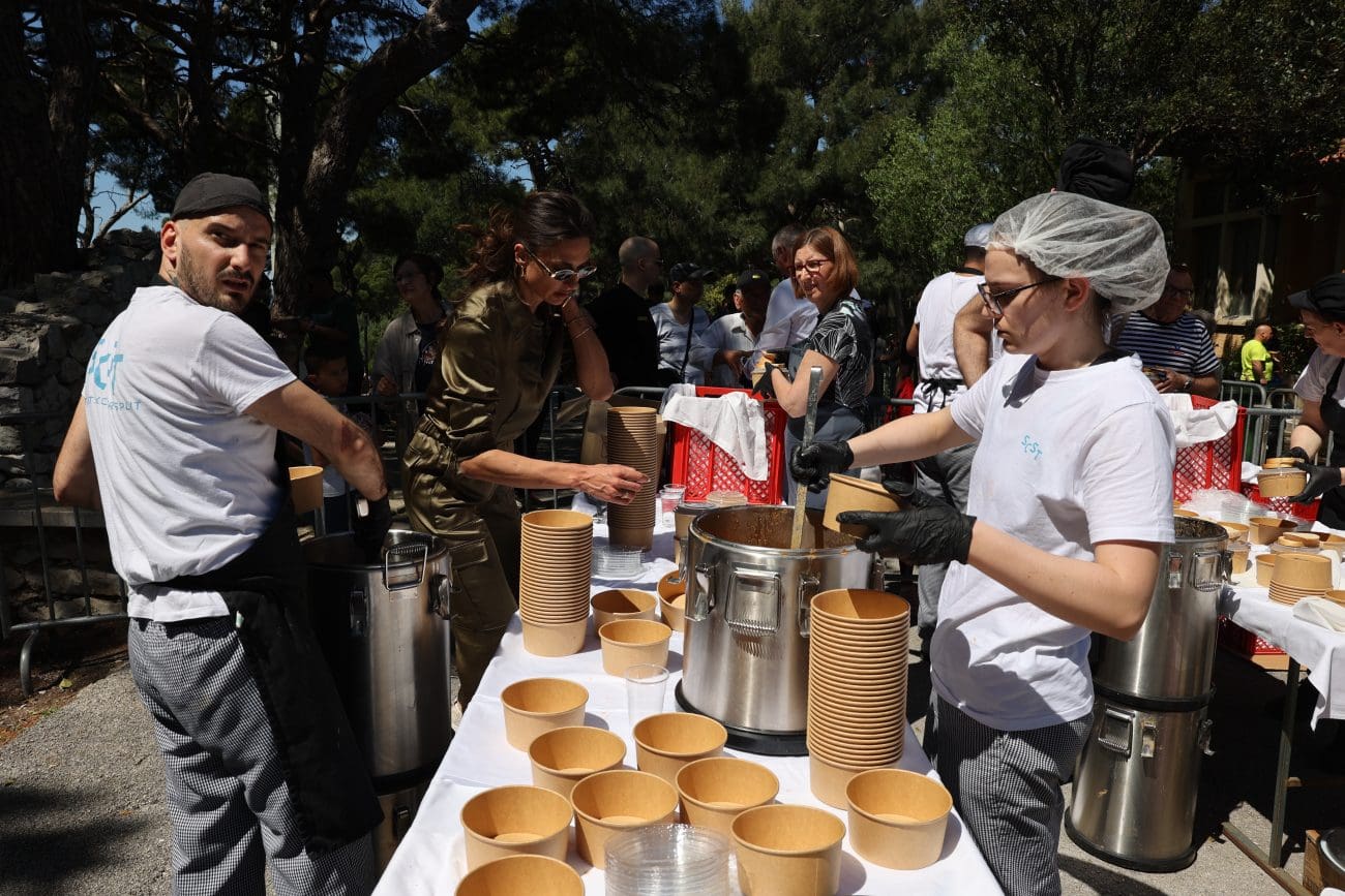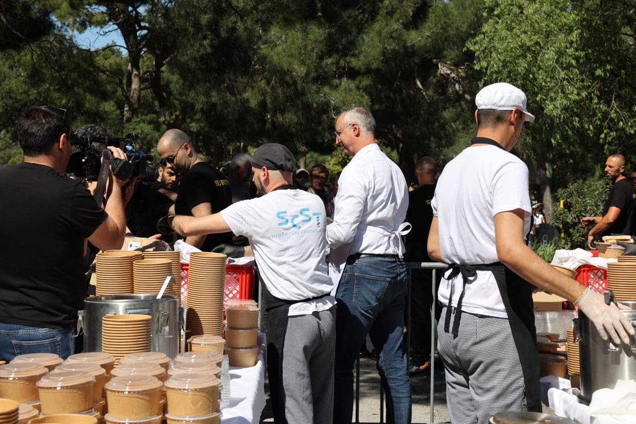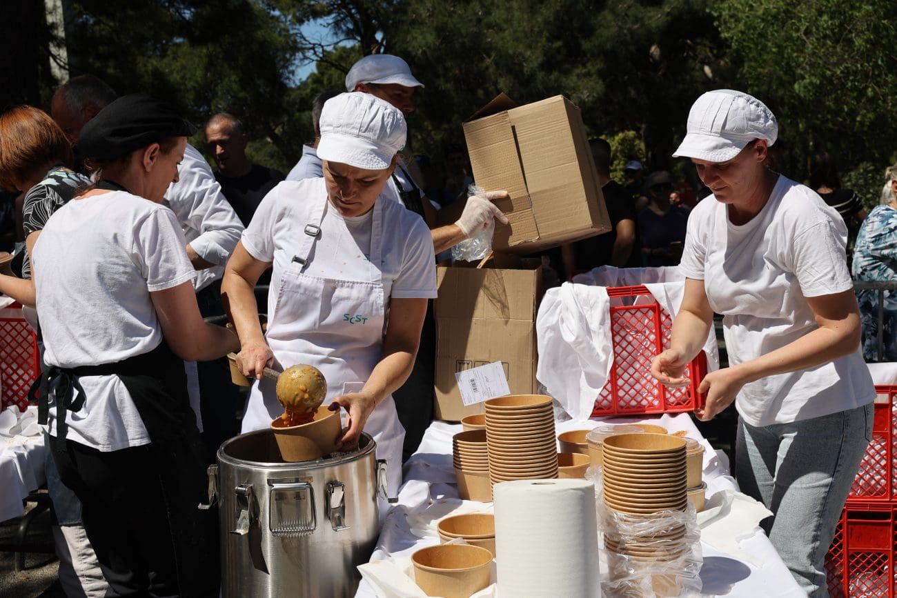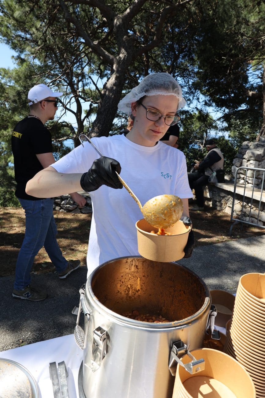 Više od 3000 porcija graha s kobasicama i pancetom podijeljeno je u nešto više od sat i pol, a u dijeljenju su sudjelovali gradonačelnik Ivica Puljak, saborska zastupnica Marijana Puljak i dogradonačelnik Bojan Ivošević, uz pomoć djelatnika Studentskog centra Split. Besplatan autobusni prijevoz do vrha Marjana osigurala je tvrtka Promet Split, čime je omogućen lak pristup svima koji su željeli dan provesti na svježem zraku.