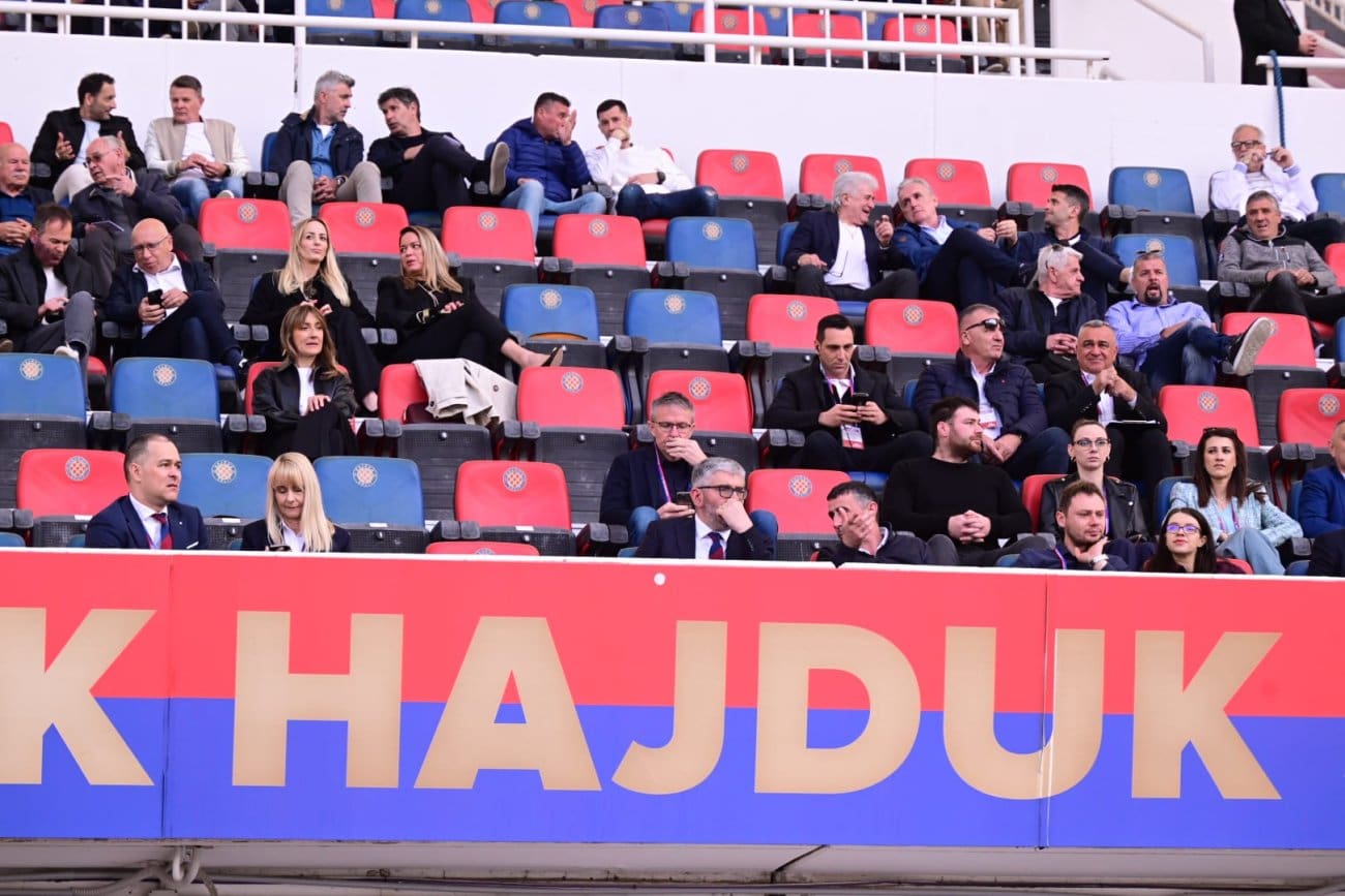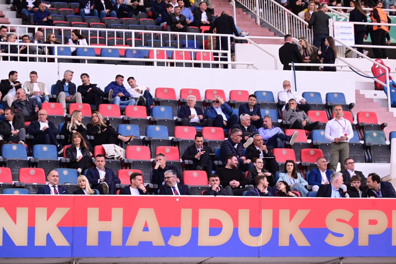 Brojni su navijači stigli na Poljud. Stadion nije pun kao za vrijeme derbija, ali svakako ima dovoljno navijača za jaku podršku klubu. I svečana loža fino je popunjena, a u njoj ima i poznatih lica. Pogledajte i sami tko je sve stigao.