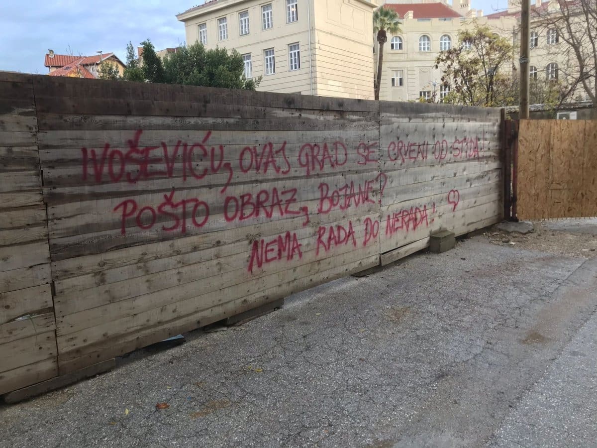 "Ivoševiću, ovaj grad se crveni od stida! Pošto obraz, Bojane? Nema rada do nerada!", stoji na natpisu u Hrvojevoj ulici u Splitu, a nepoznati autor je dogradonačeniku Grada Splita Bojanu Ivoševiću ostavio i 'nacrtano' srce.
