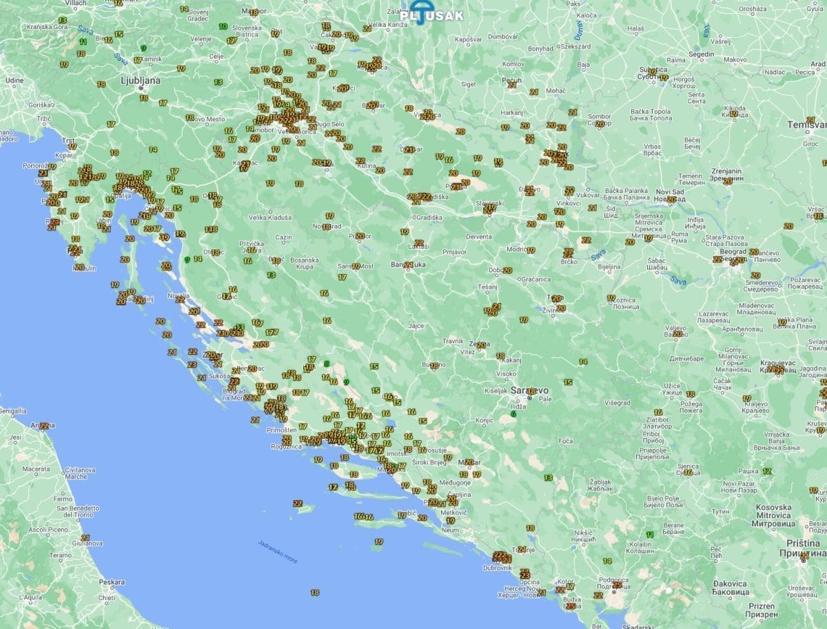 Upravo takav scenarij imamo i danas. Na Jadranu prevladava oblačno, a glavnina oborinske mase je nad srednjom Dalmacijom. Pri tome najviše kiše, pljuskova i grmljavine ima na potezu od Lastova do Brača. Lastovo je oko 10 sati zahvatilo jače grmljavinsko nevrijeme s obilnim oborinama.