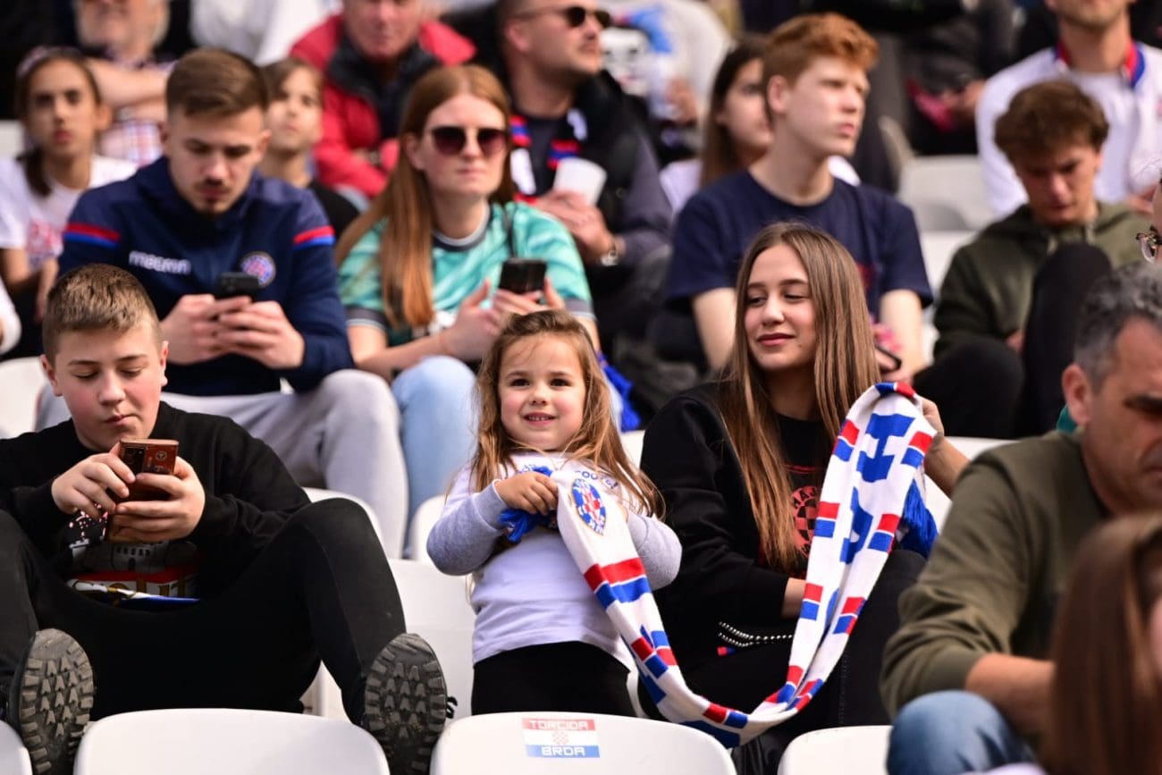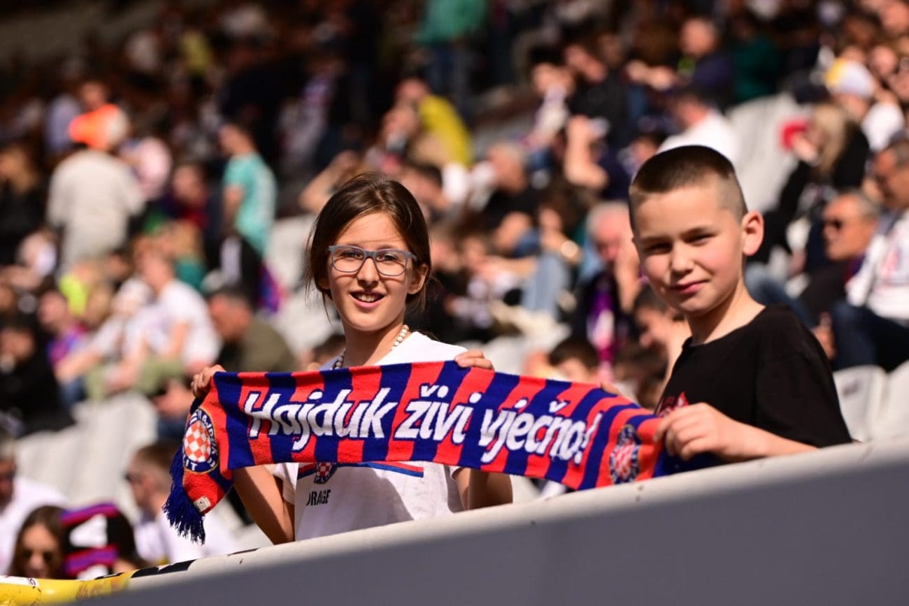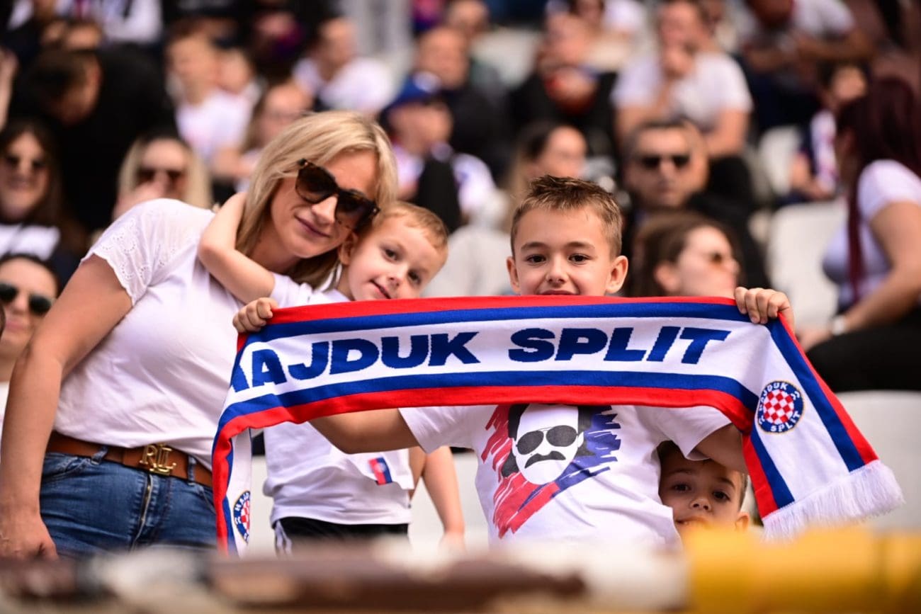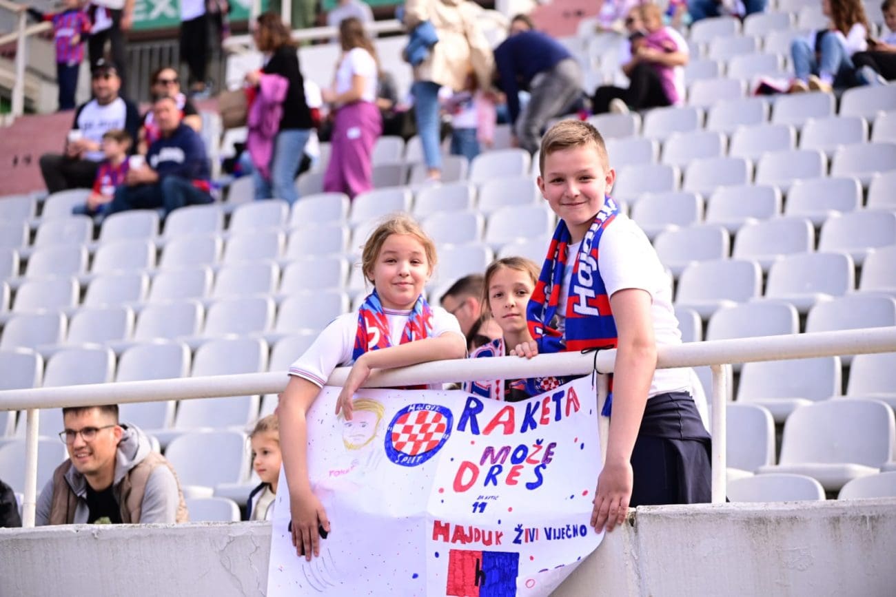 Igrači su na zagrijavanju, utakmica samo što nije počela, navijači su se smjestili po tribinama. Pristižu i Funcuti. Kao i uvijek, igrače Hajduka bodre cijele obitelji. Stari, mladi, muškarci, žene... Uostalom, pogledajte i sami u našoj fotogaleriji.