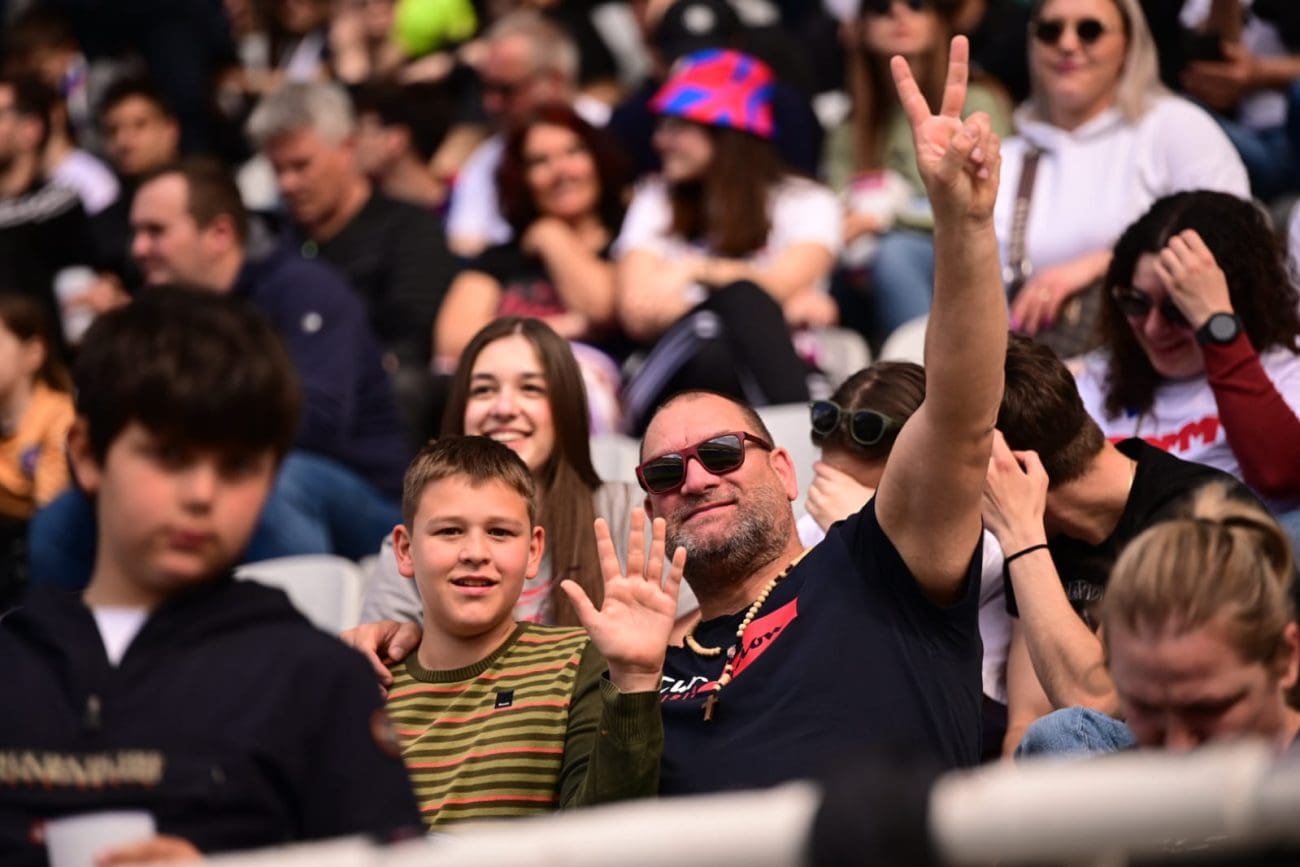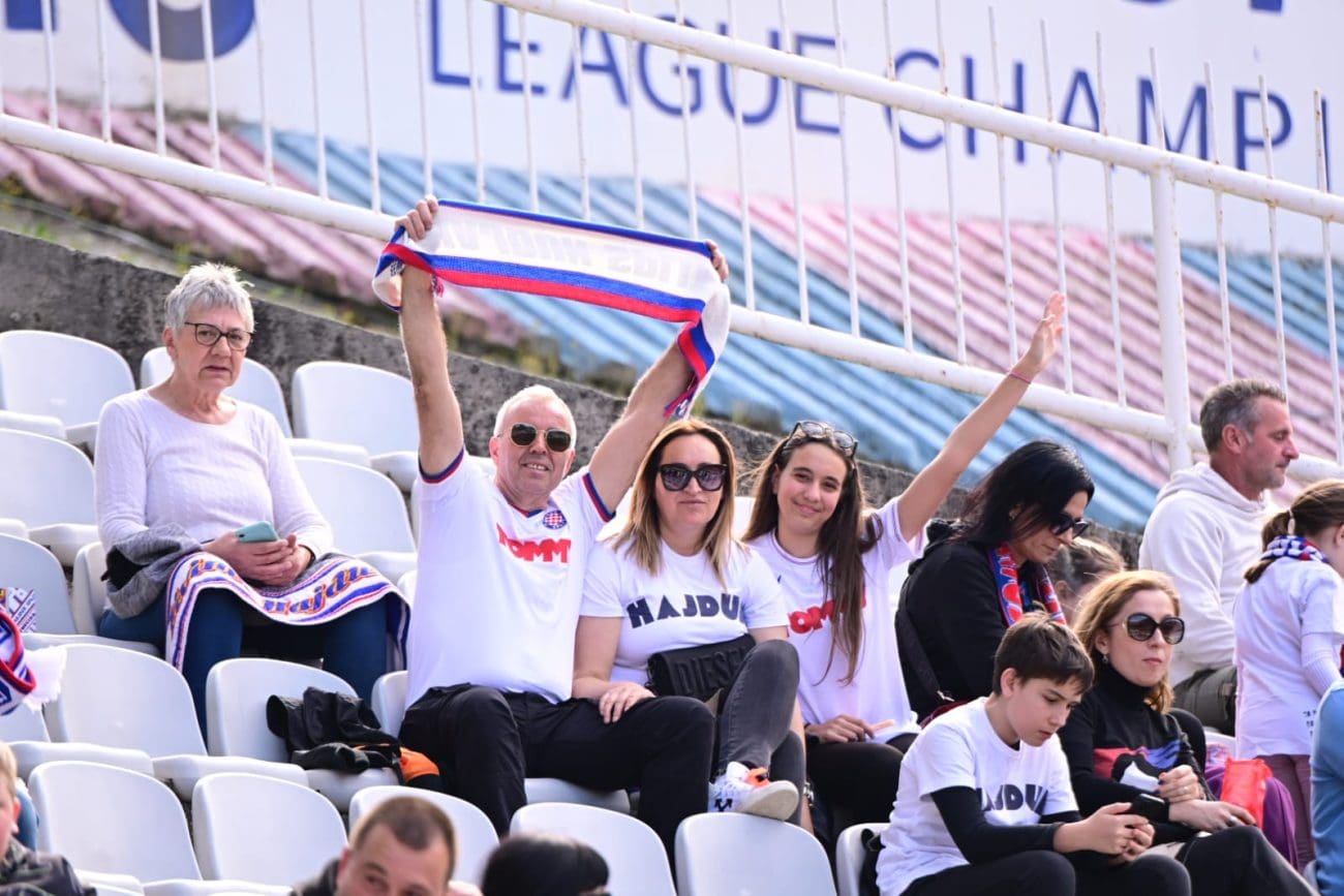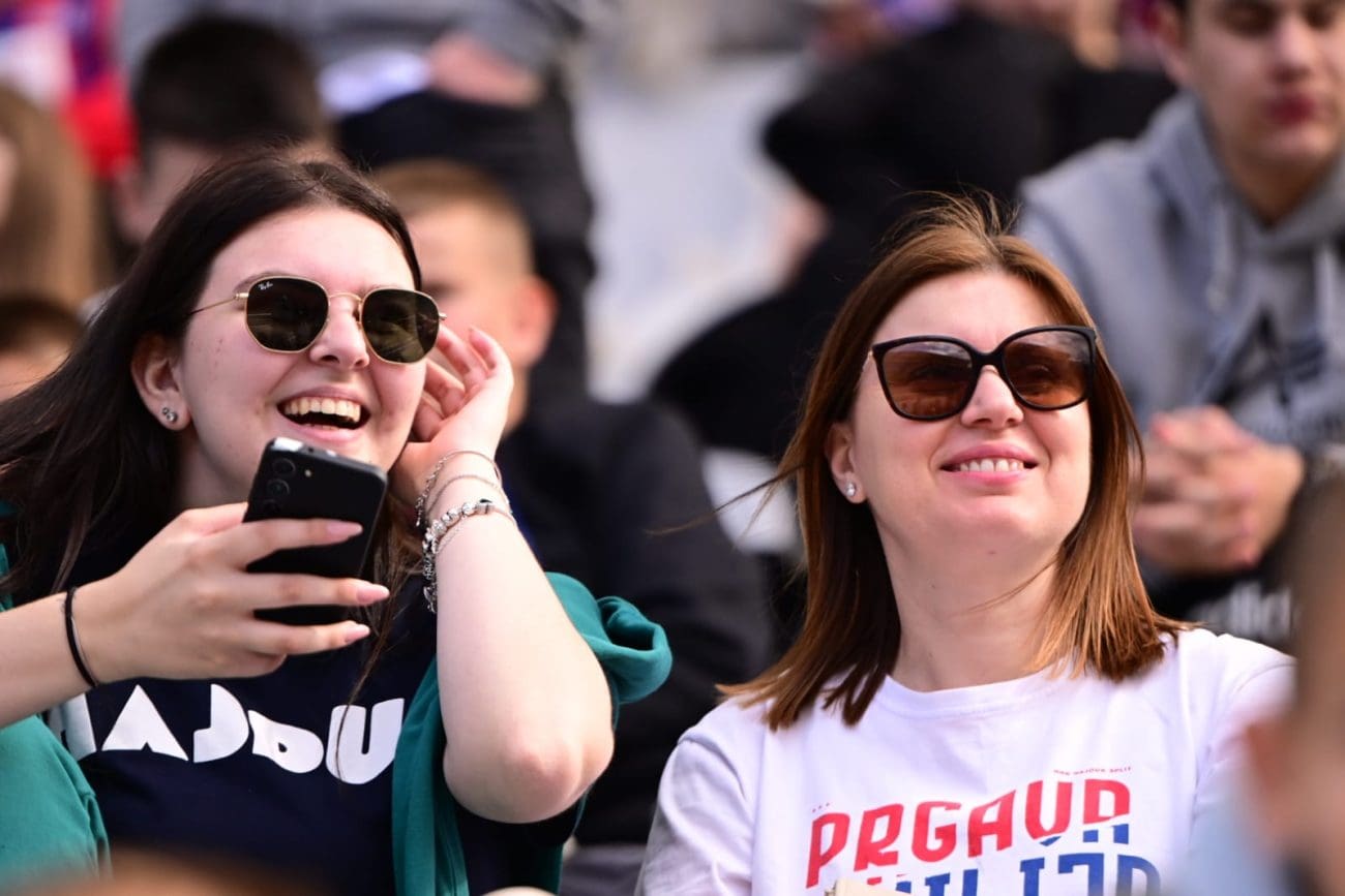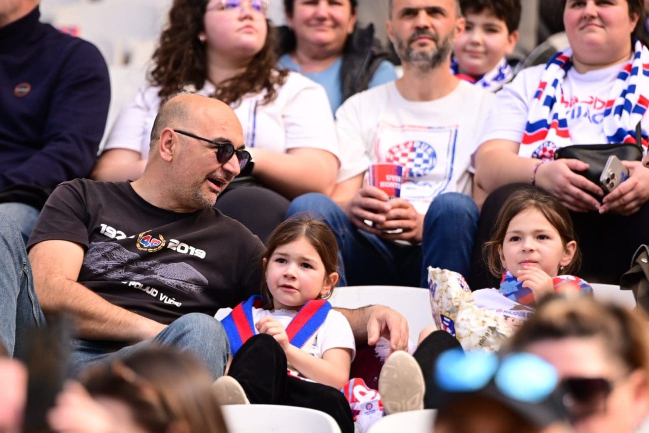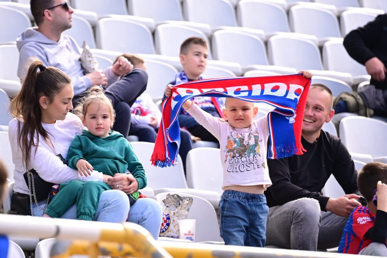 Igrači su na zagrijavanju, utakmica samo što nije počela, navijači su se smjestili po tribinama. Pristižu i Funcuti. Kao i uvijek, igrače Hajduka bodre cijele obitelji. Stari, mladi, muškarci, žene... Uostalom, pogledajte i sami u našoj fotogaleriji.