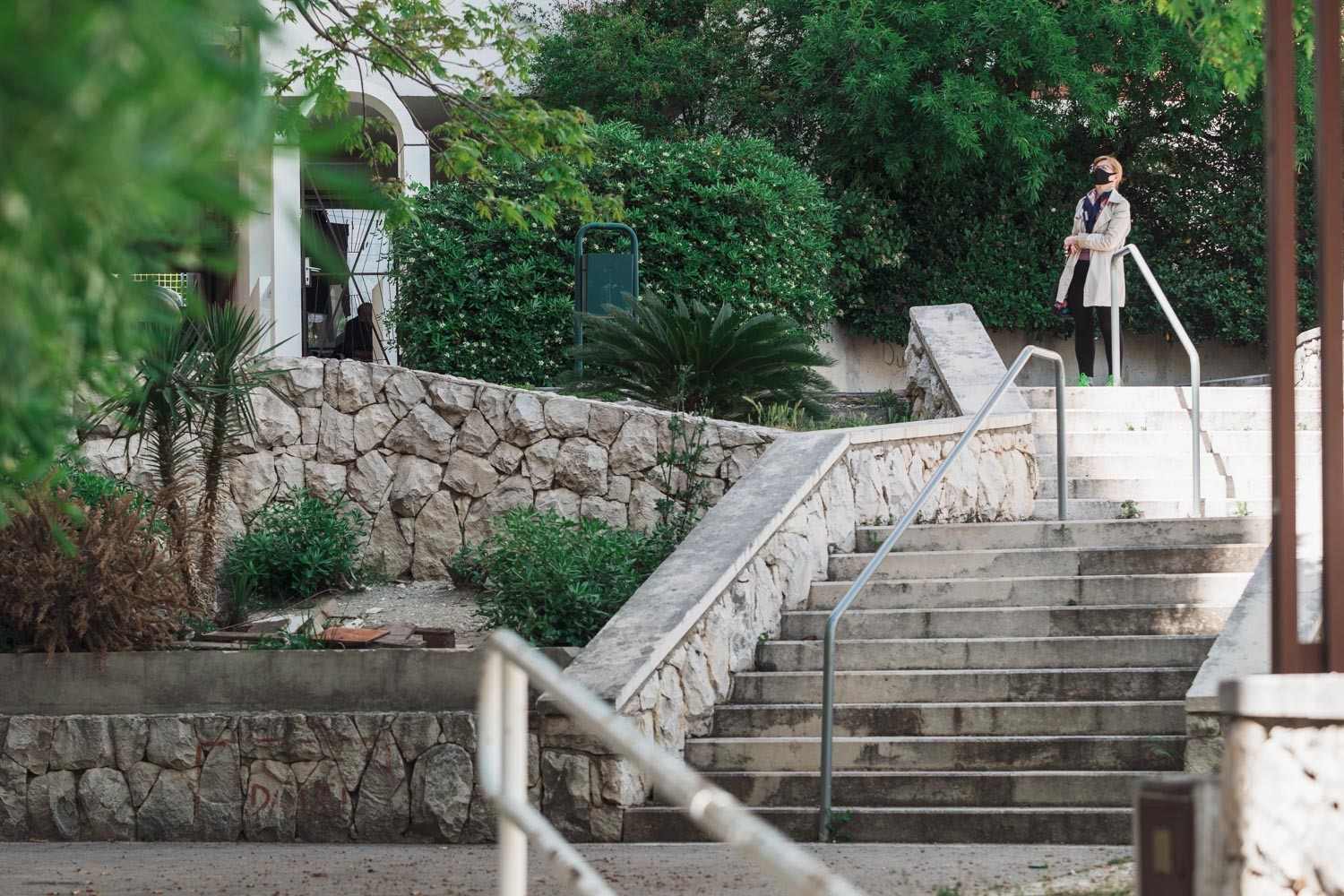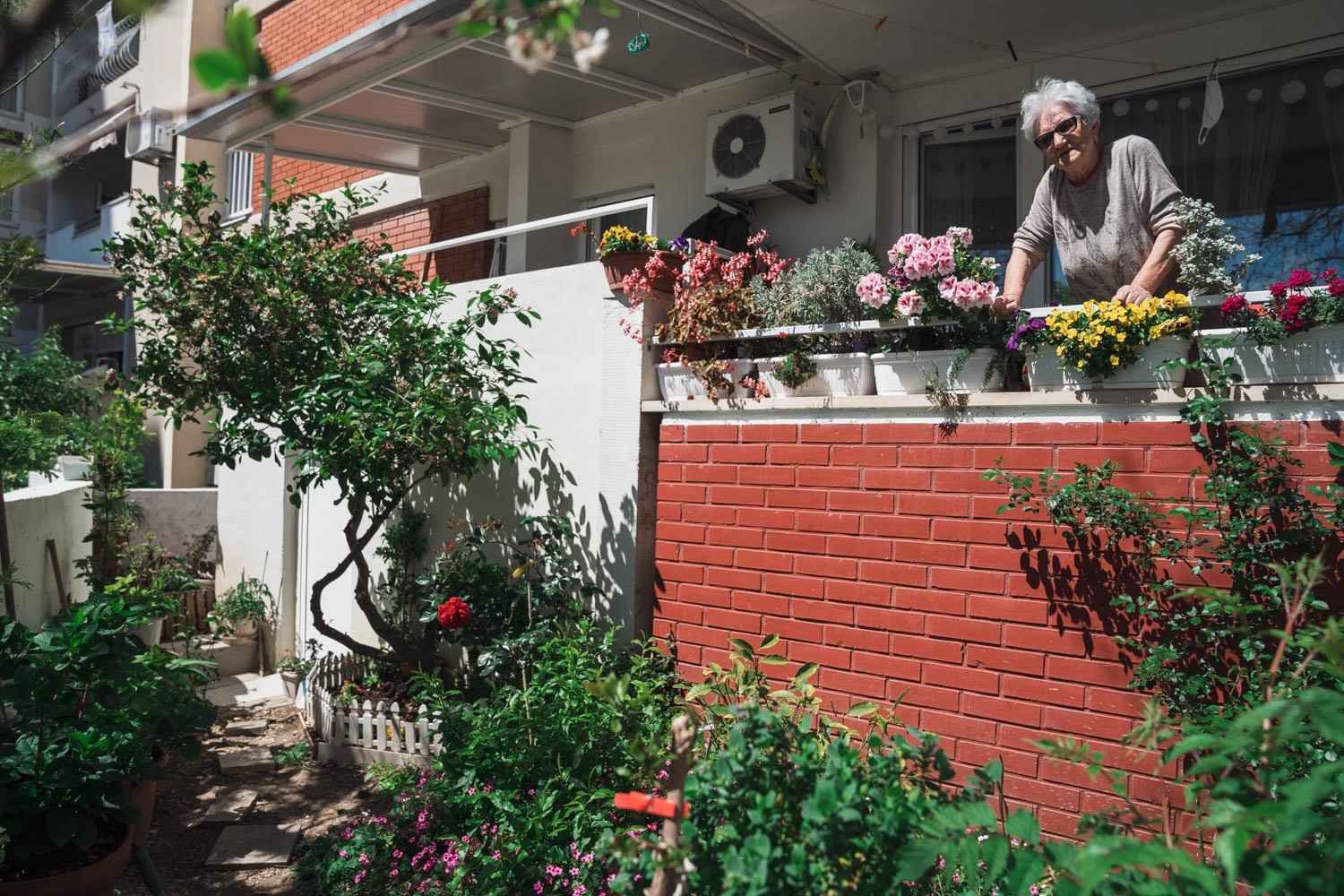 Prilikom fotografiranja snimili smo gospođu Biserku koja živi u prizemlju, a prekrasno je uredila svoj balkon i vrt s raznim vrstama cvijeća, ukrasnih biljaka, čak i voćkama.