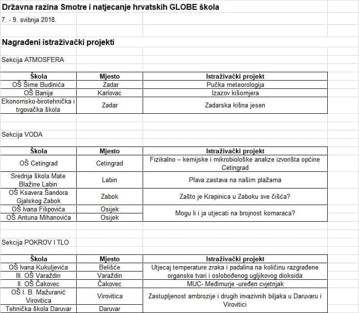 Ovdje možete pogledati rezultate 21. Smotre i natjecanja hrvatskih GLOBE škola: