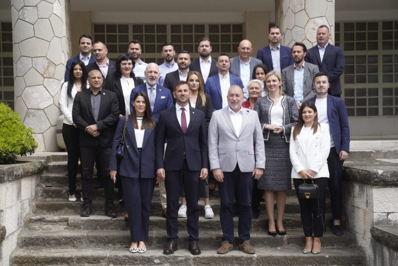 Tomislav Šuta, HDZ-ov kandidat za gradonačelnika Splita, obratio se svojim biračima, a ispred zgrade Banovine pridružili su mu se kandidati za zamjenike Matea Dorčić i Ivo Bilić te drugi članovi stranke.