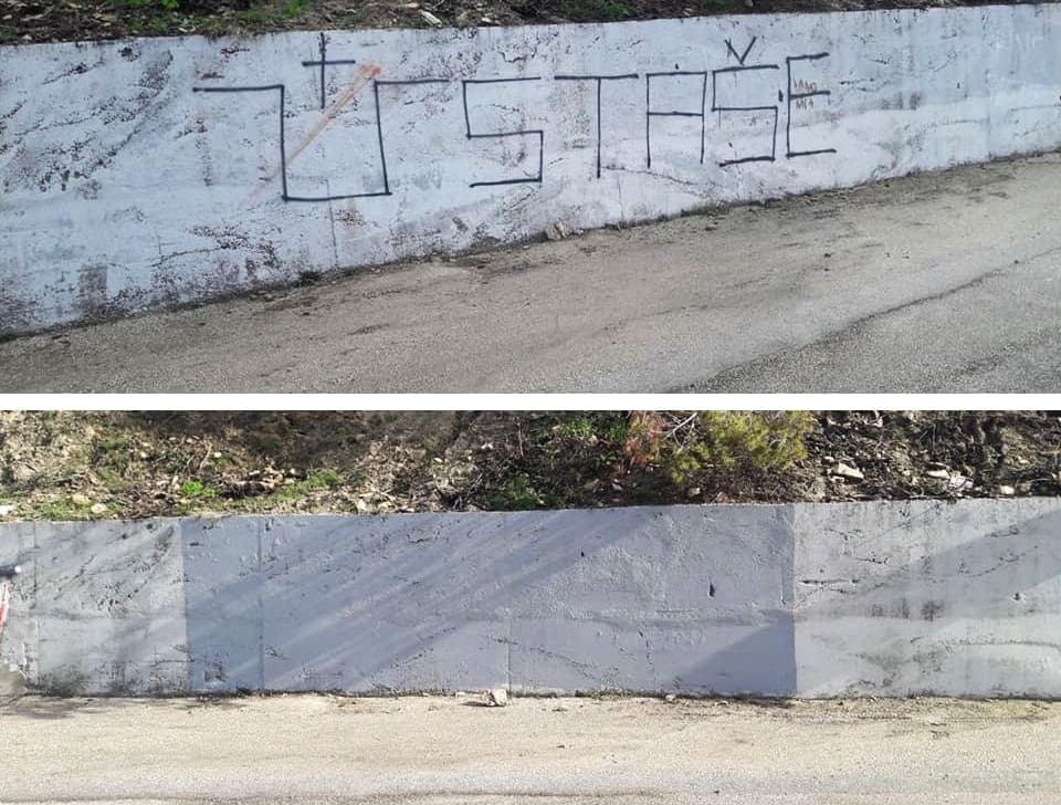 "Natpis osvanuo na prilazu OŠ Žrnovnica. Nakon reagiranja prema gradskoj komunali rezultat vidite. Hvala, Ivica Grubišić -Gire" - kratko je komentirao Blažević.