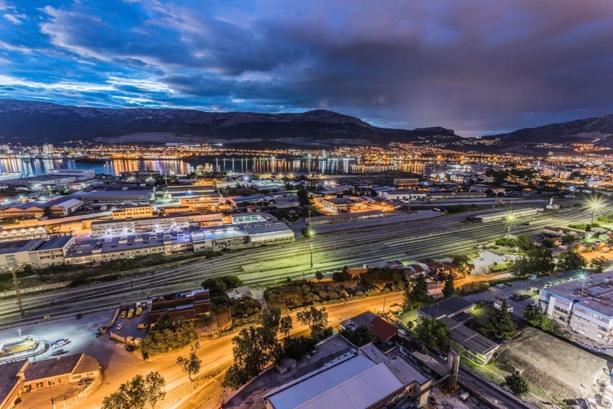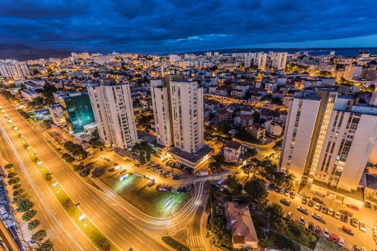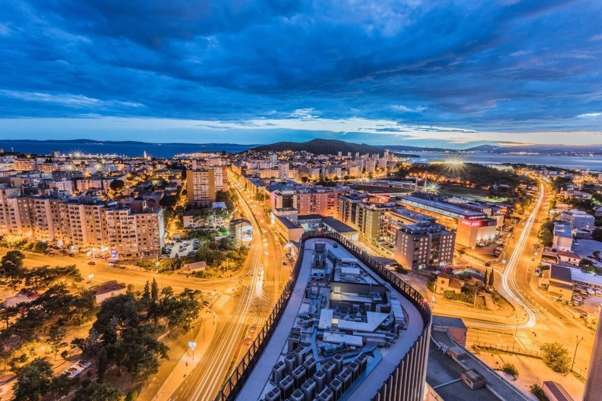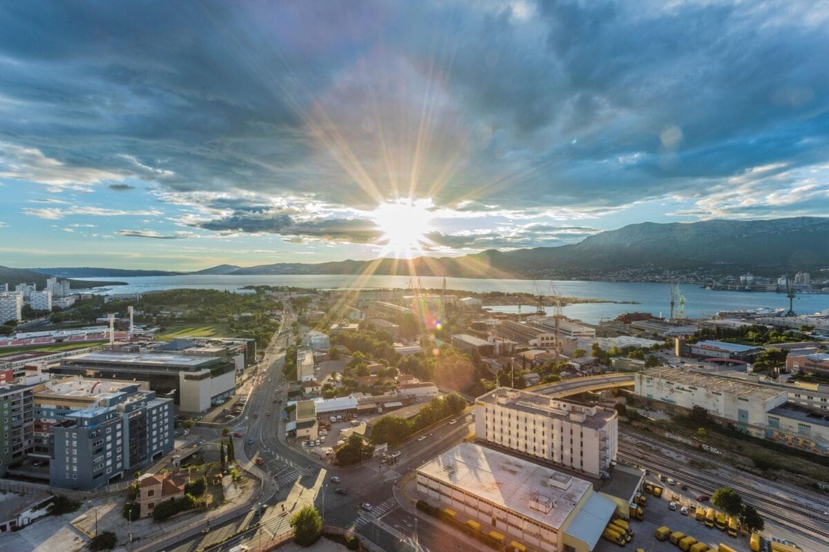 Splitski fotograf Martonio Paleka danas je s trenutno zadnjeg kata tornja Dalmacija snimio zalazak Sunca i atraktivne panoramske fotografije Splita u predvečerje. (Više fotografija ovog odličnog fotografa možete pratiti na njegovom fotografskom Instagramu).