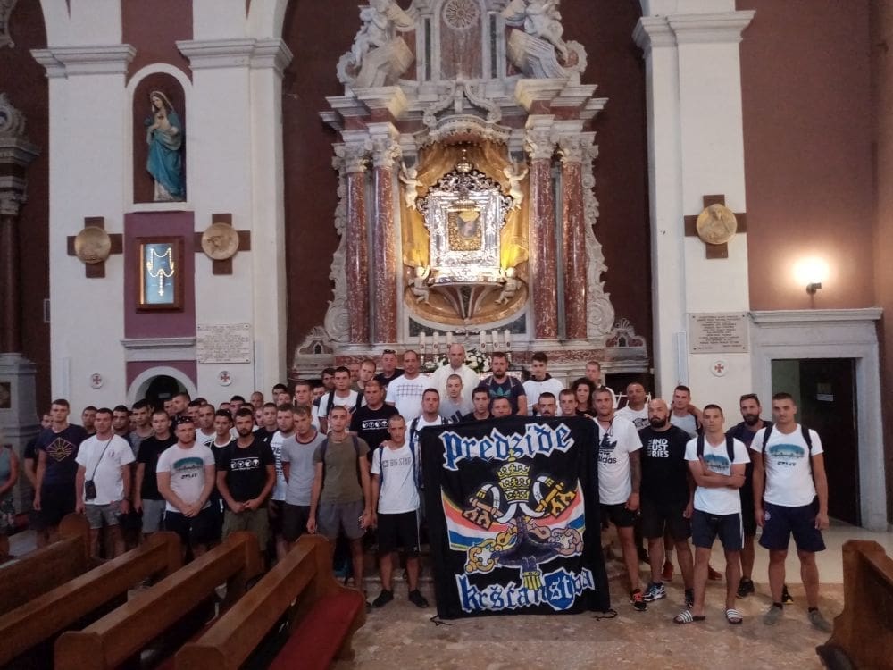 Oni koji su imali potrebu pristupili su sakramentu ispovijedi, a u 16:30 za hodočasnike je u crkvi Gospe Sinjske sv. misu služio fra Domagoj Runje, duhovni predvoditelj hodočašća. Kako je sam rekao, fra Domagoj u sportskom smislu nema nikakve veze s navijačima, ali ova pedesetočlana skupina navijača bila je izvanredno disciplinirana – poštivali su sva hodočasnička pravila. Sinjska TORCIDA je kao domaćin, na čelu s Pavom Vučkovićem, za sve hodočasnike u predvorju svoga kluba u Sinju priredila ručak na kojem je uz ostale bio i njihov duhovni predvoditelj hodočašća fra Domagoj Runje.