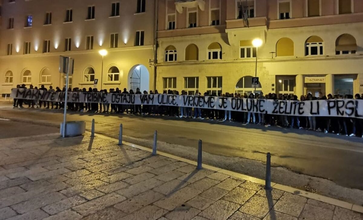 "Maknite nas sa tribine, ostaju vam ulice, vrijeme je odluke, želite li prsluke?!" - pisalo je na transparentu.