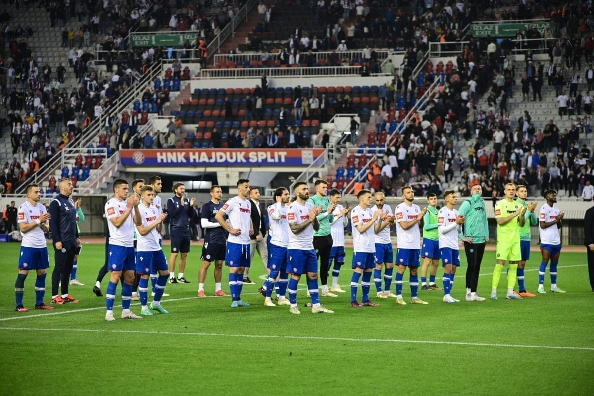 Torcida je pjesmom ispratila igrače Hajduka. Iako je Dinamo danas postao prvak Hrvatske, to navijače Hajduka nije rastužilo te su skandiranje pozdravili svoje igrače.