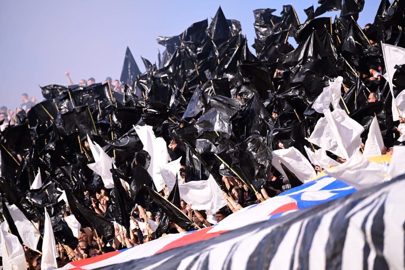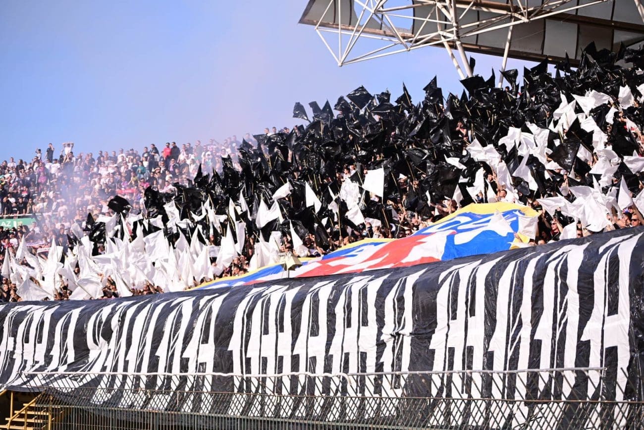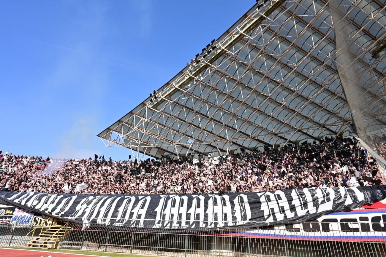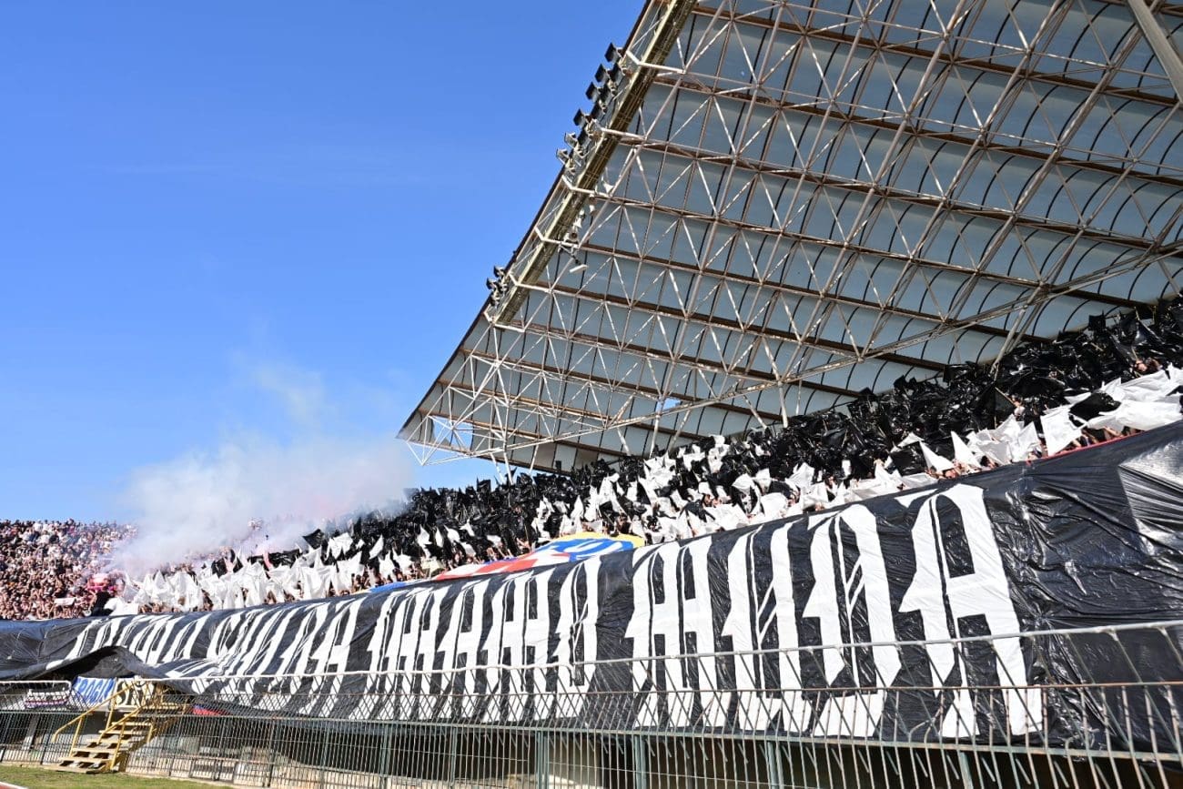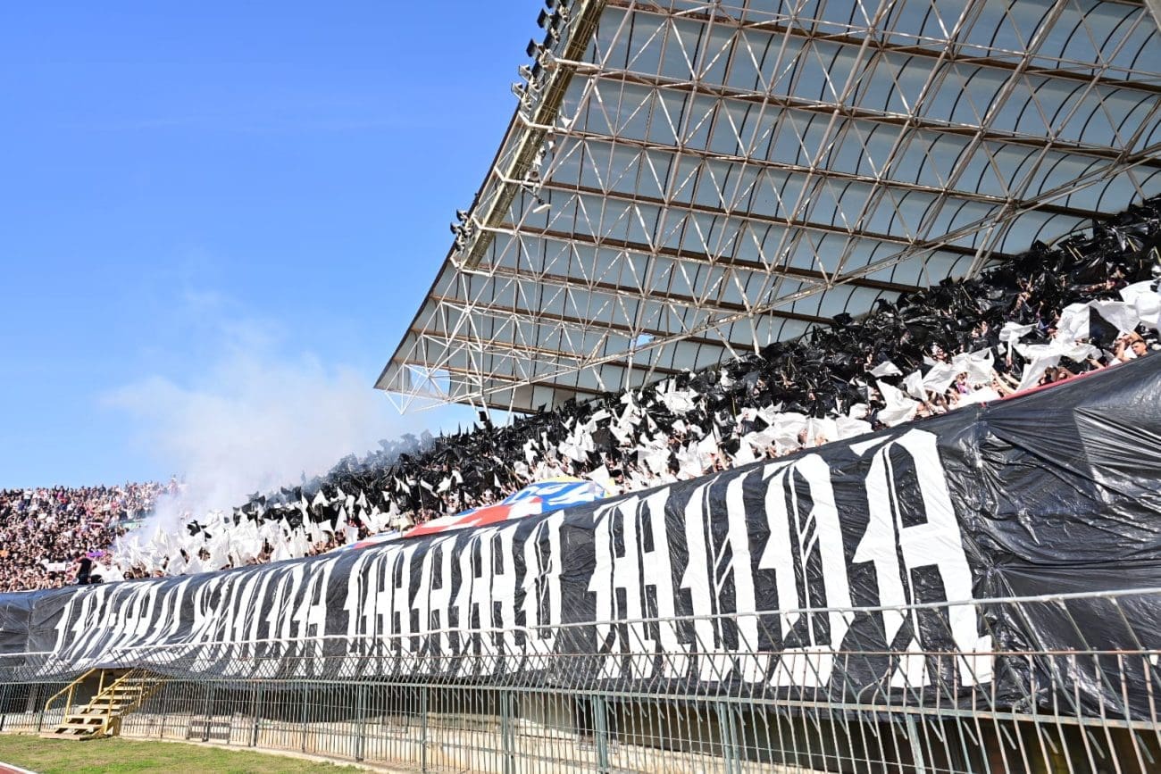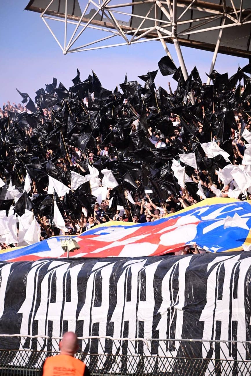 U 19. minuti Torcida je razvila koreografiju preko sjeveroistoka, pola je Hajdukova grba bilo iznad transparenta: "IDEMO SVUDA IMAMO MUDA", a ostatak je mahao crno-bijelim zastavama.