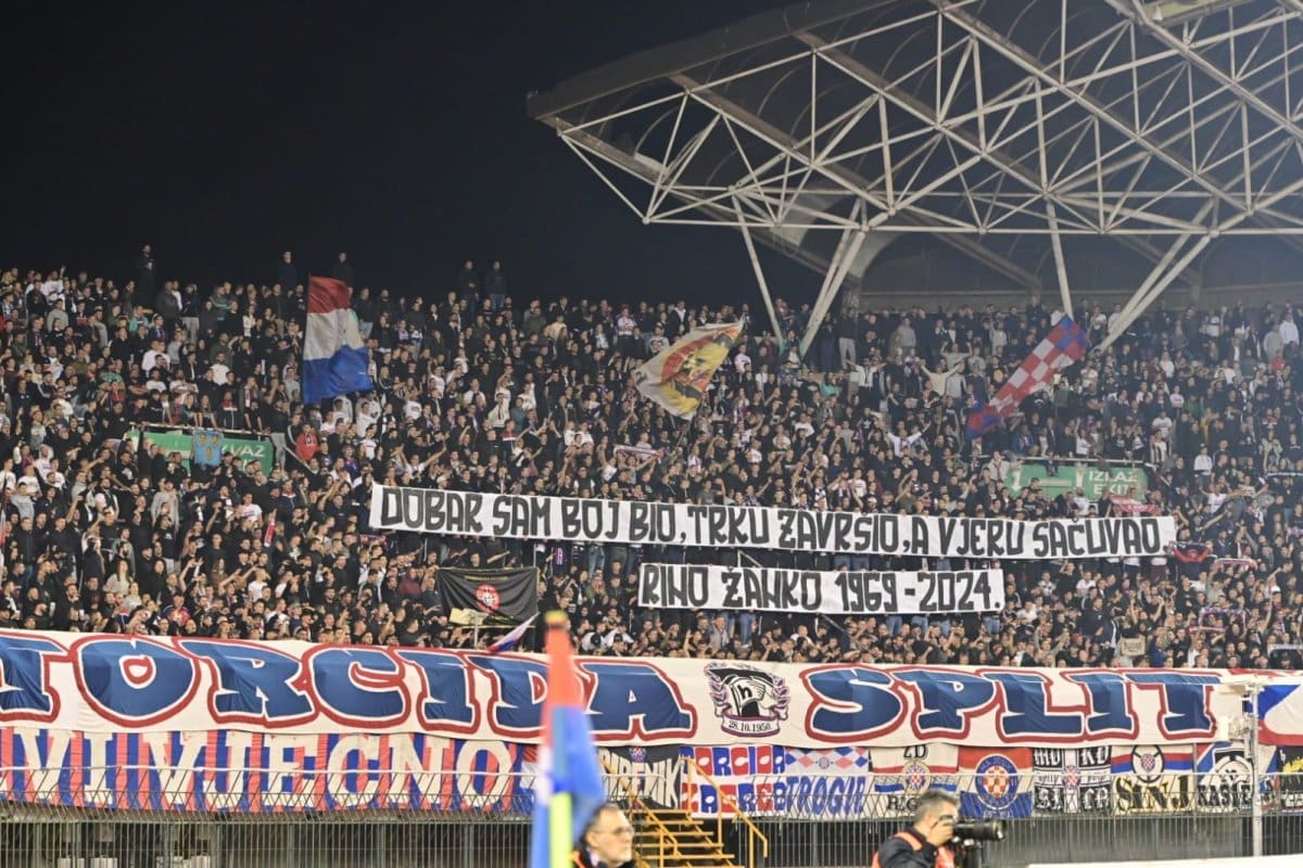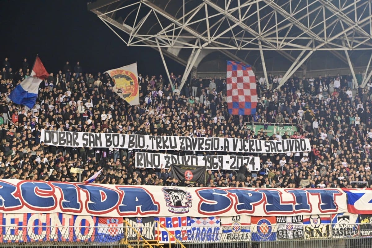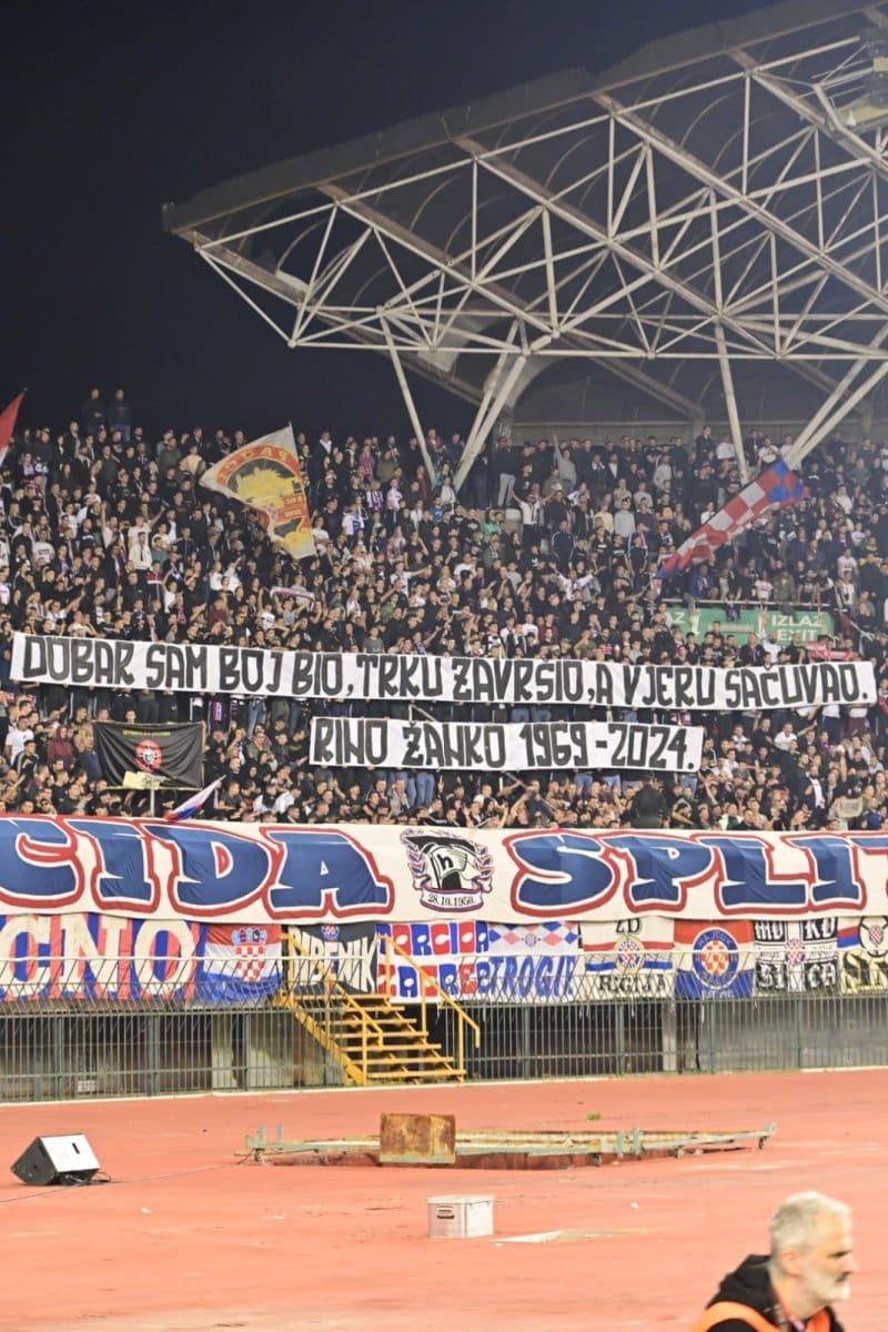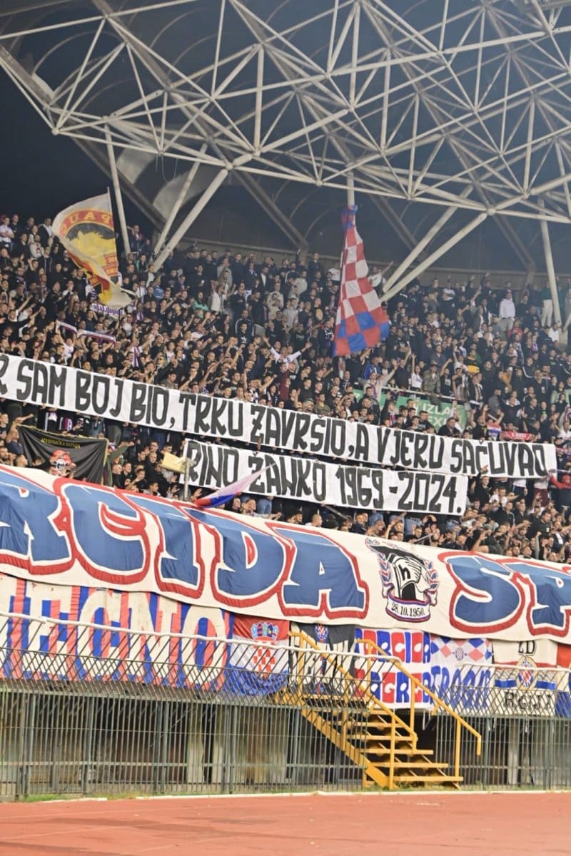 U 25. je minuti Torcida podignula poruku pripadniku 4. gardijske brigade „DOBAR SAM BOJ BIO, TRKU ZAVRŠIO, A VJERU SAČUVAO.