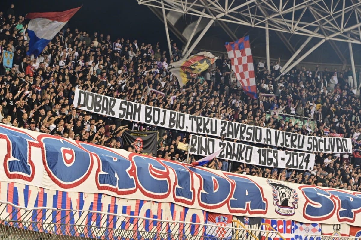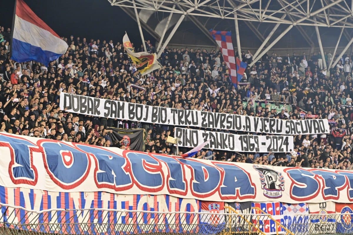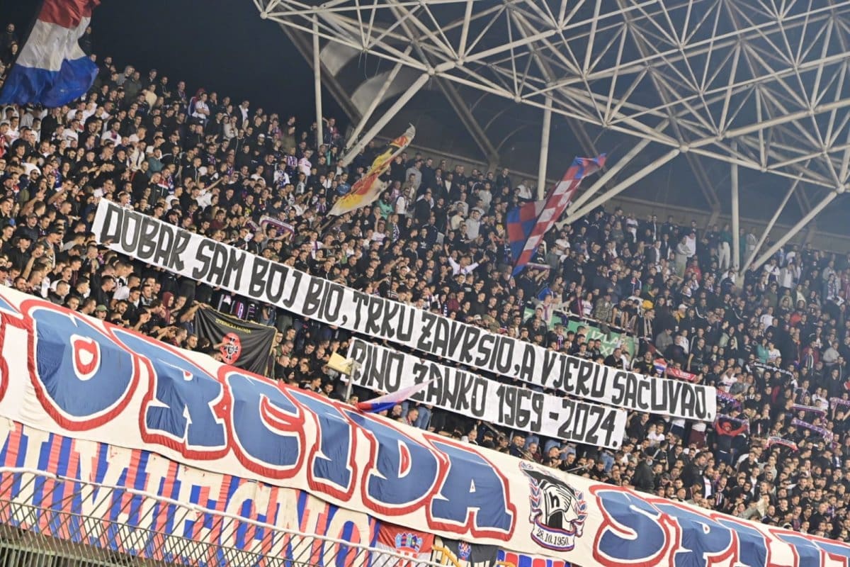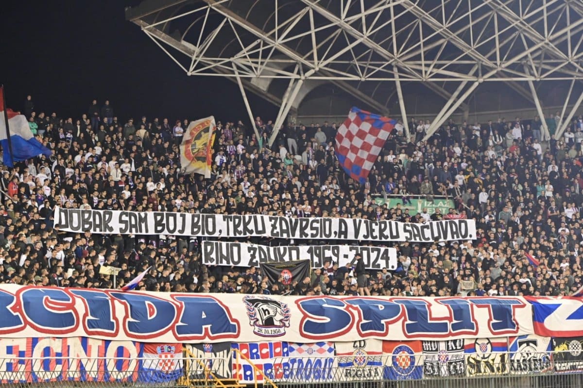 U 25. je minuti Torcida podignula poruku pripadniku 4. gardijske brigade „DOBAR SAM BOJ BIO, TRKU ZAVRŠIO, A VJERU SAČUVAO.
