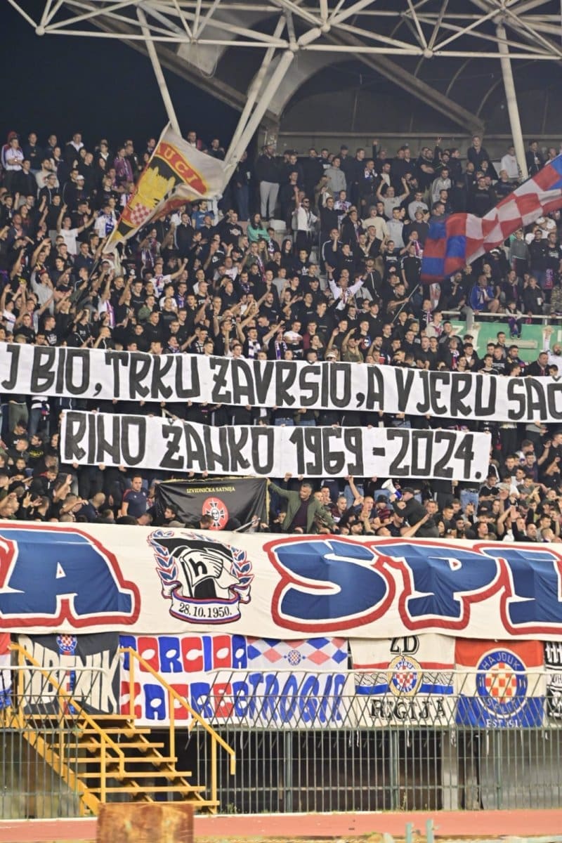RINO ŽANKO 1969. – 2024.“ Potom je zaorila pjesma „Hrvatska me mati rodila“, a nakon nje „Rasti zemljo, pukni stino“.