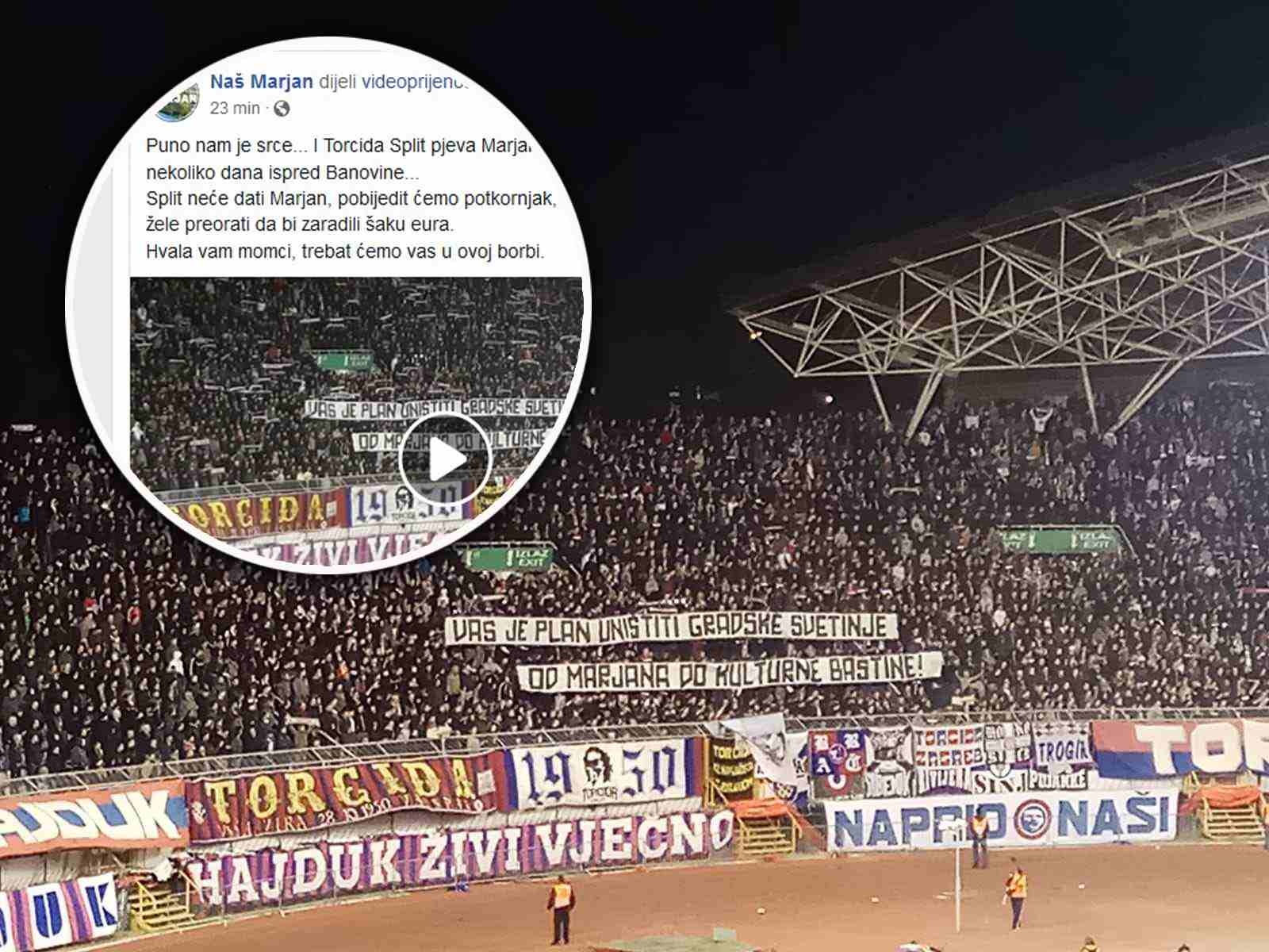 "Puno nam je srce... I Torcida Split pjeva Marjane, Marjane kao i mi prije nekoliko dana ispred Banovine... Split neće dati Marjan, pobijedit ćemo potkornjak, ali i sve one koji ga žele preorati da bi zaradili šaku eura.