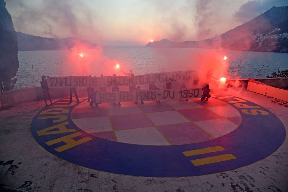 Torcida Dubrovnik je organizirala bakljadu na Belvederu povodom izjave predsjednika Republike Hrvatske Zorana Milanovića o HOS-ovoj ploči.