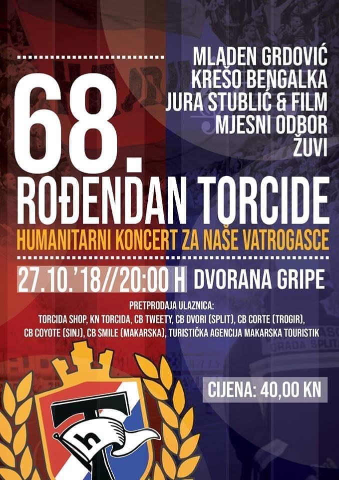 Torcida ove subote na Gripama organizira proslavu 68. rođendana.