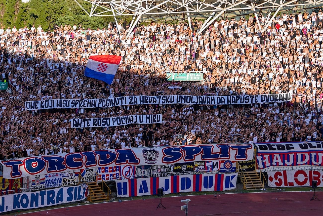 Podijeli Facebook Twitter Telegram WhatsApp E-mail adresa U 40. je minuti Torcida podignula transparent posvećen Anti Rosi. Preko sjevera pisala je Rosina izjava: „ONE KOJI NISU SPREMNI POGINUTI ZA HRVATSKU UMOLJAVAM DA NAPUSTE DVORANU“, a ispod toga „ANTE ROSO POČIVAJ U MIRU“. Moja reakcija na članak je... Ljubav 0 Haha 0 Nice 0 What? 0 Laž 0 Sad 3 Mad 0 Facebook Twitter Whatsapp Telegram