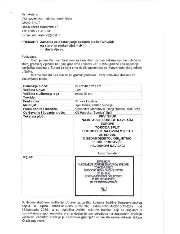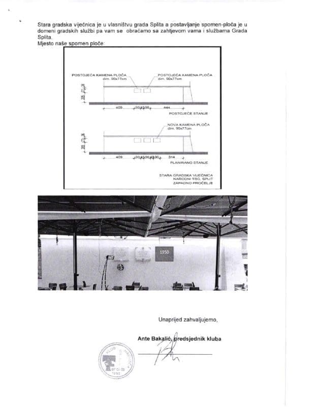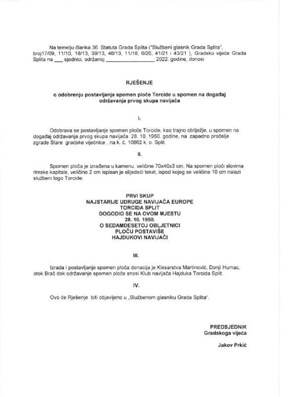 - Mi jesmo izglasali Torcidin prijelog, ali nije bilo na Gradskom vijeću. Bio je to ponedjeljak, 11. travnja, a u srijedu je već trebala bit sjednica Gradskog vijeća, ali ju je predsjednik Jakov Prkić pomaka za 26. travnja. U tom prijedlogu je određeno da ploča bude vanka na zapadnoj strani gdje su druge dvije ploče, a ovo je koliko vidim, ne mogu reć 100 posto, moram provjerit, ali čini mi se da je u lođi - rekao je Marinić.