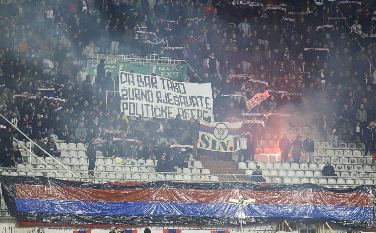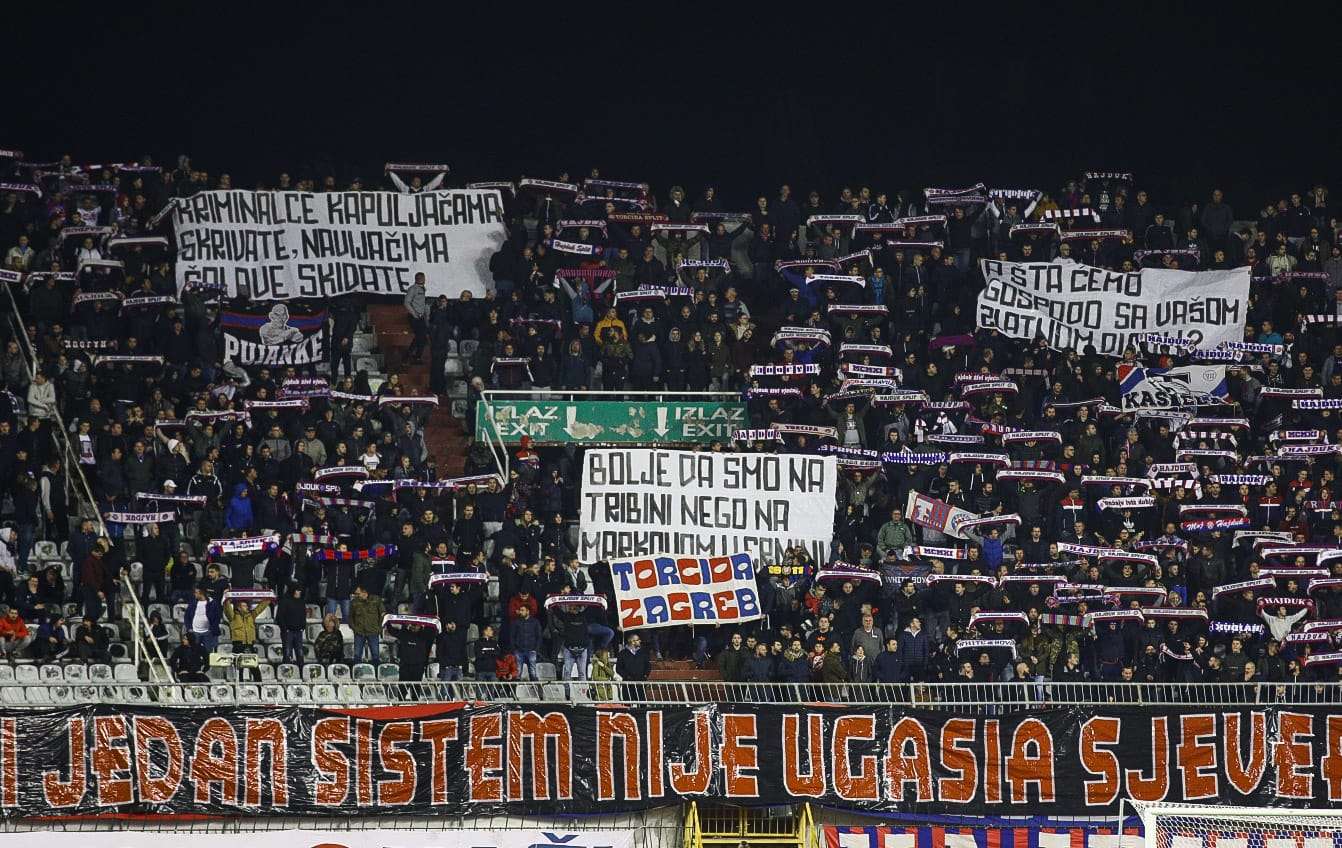 Torcida je u 50. minuti drugog poluvremena utakmice Hajduk - Rijeka na Sjeveru istaknula brojne poruke. Navedimo ih redom: