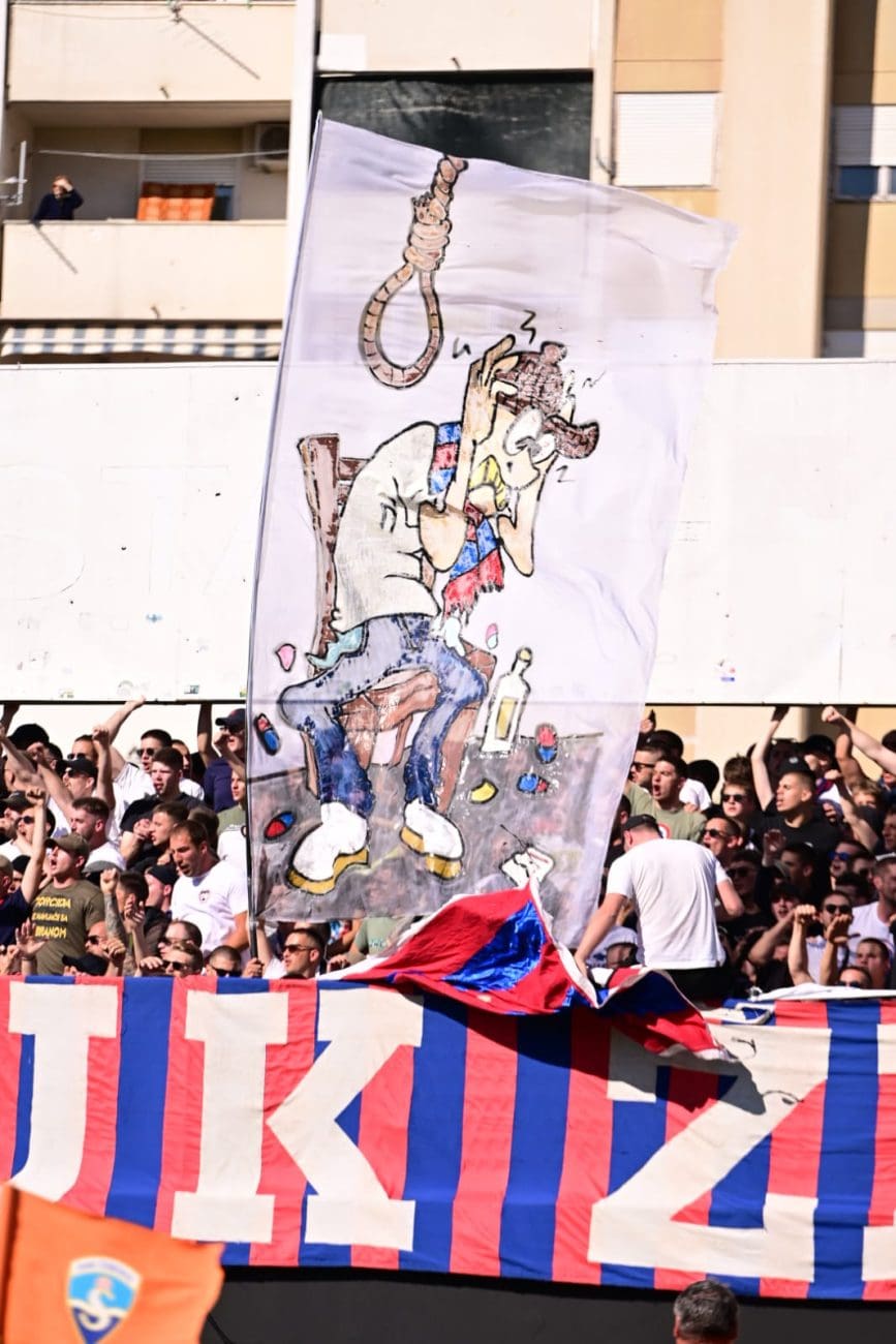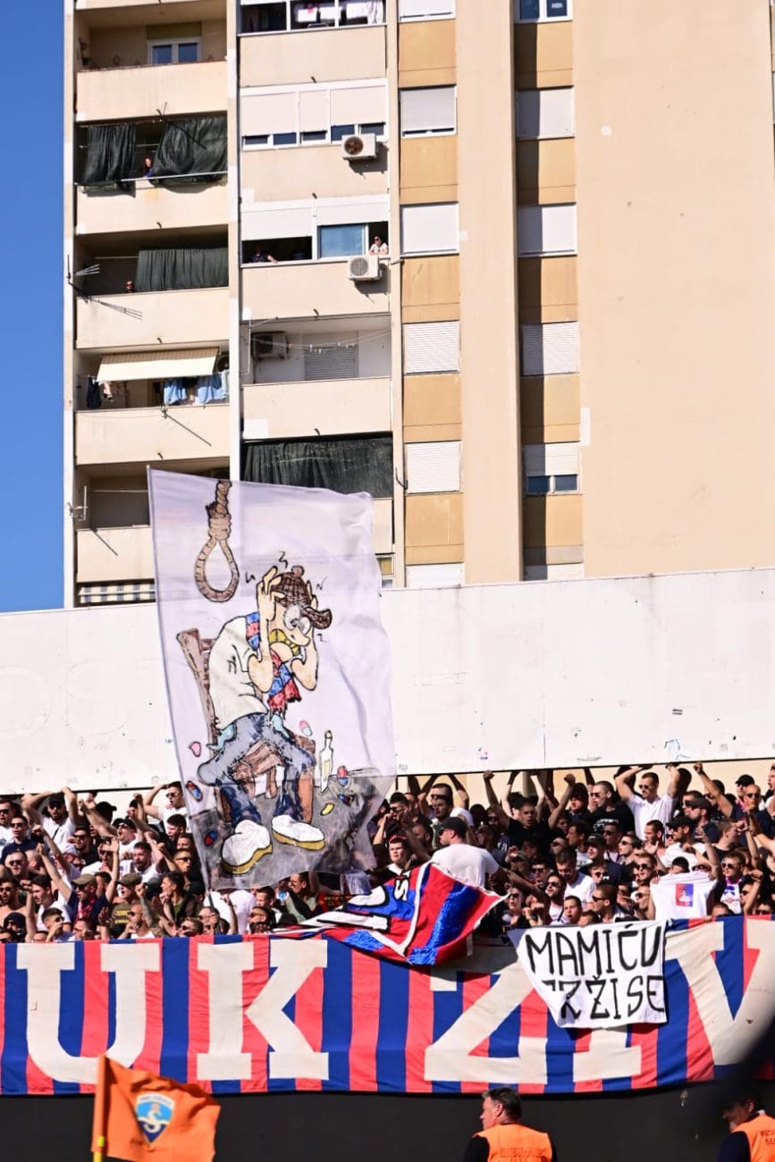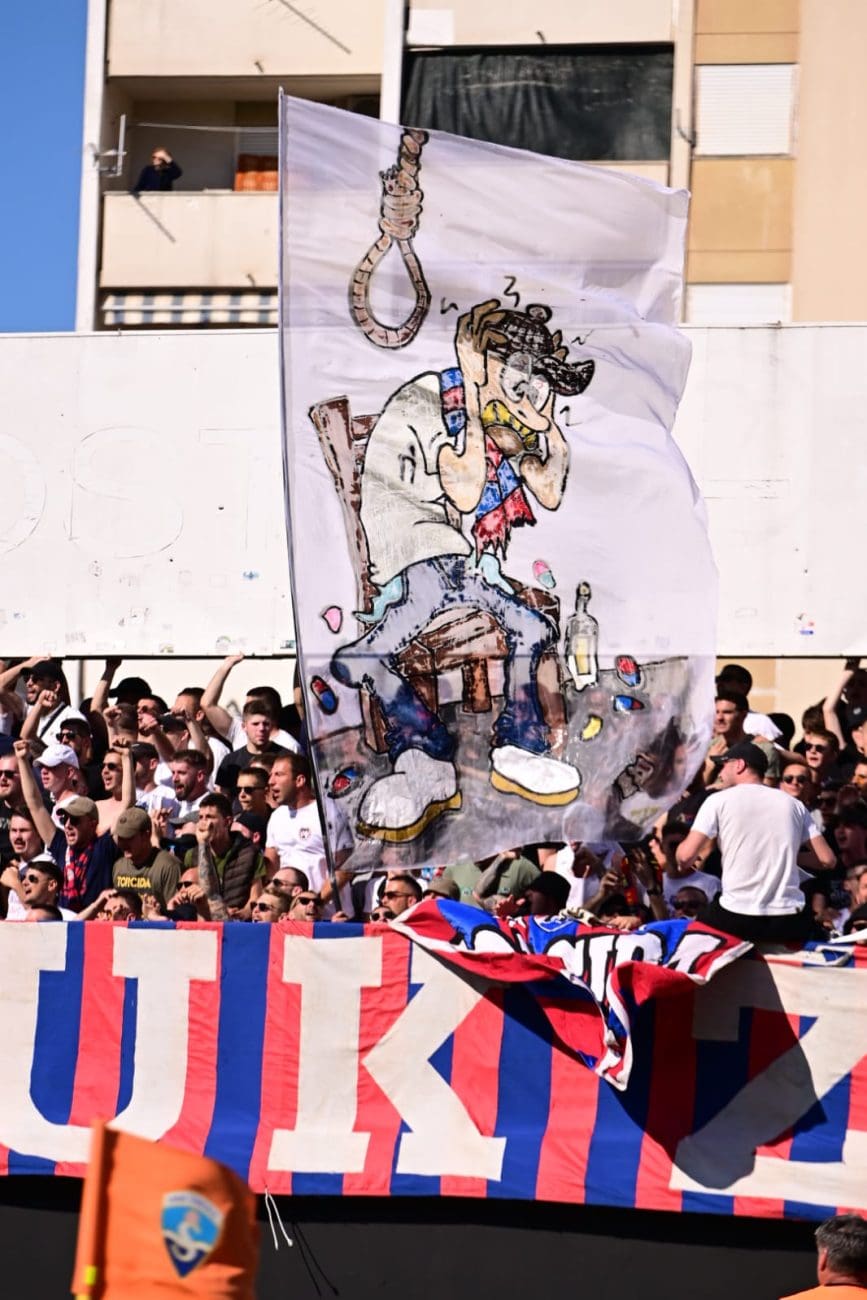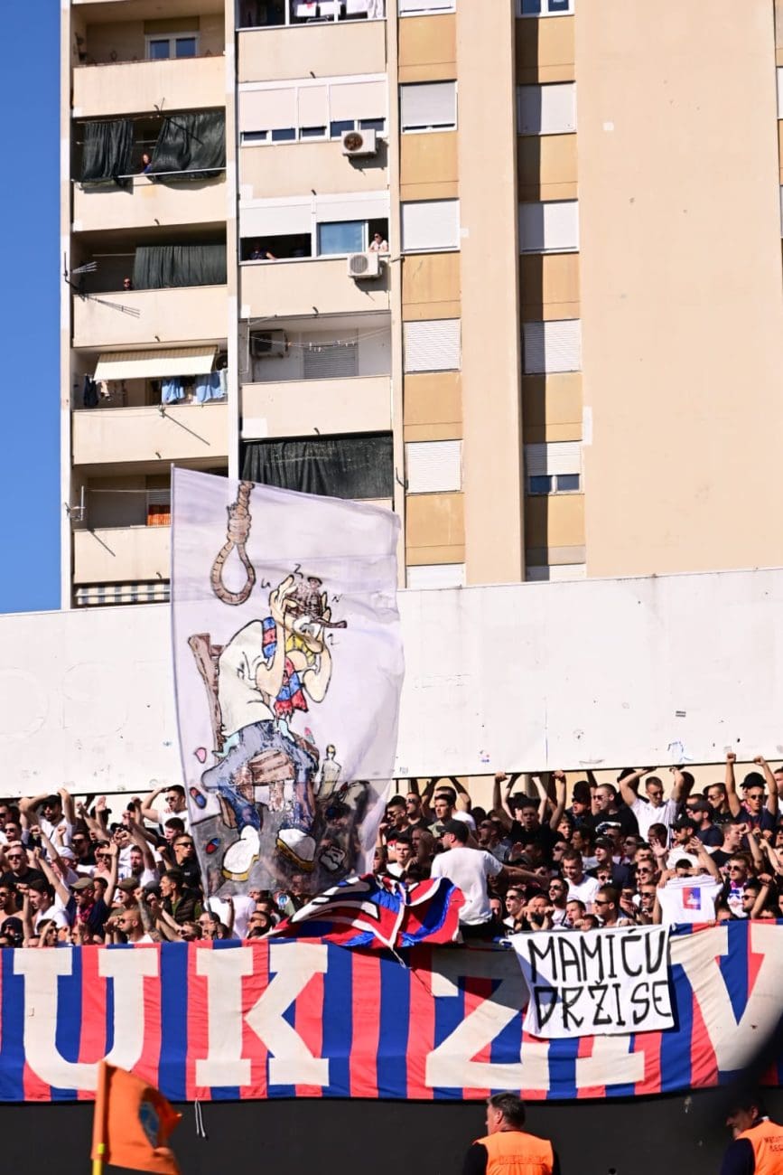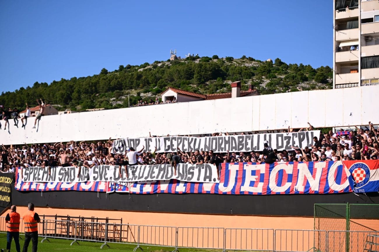 Uoči samog početka susreta, Torcida je istaknula poruku: "KONOP JE U GEPEKU, NORMABELI U DŽEPU, / SPREMNI SMO NA SVE, OČEKUJEMO NIŠTA.", aludirajući na glupo prosute bodove Hajduka u utakmicama koje su dodatno zakomplicirale borbu za prvaka.