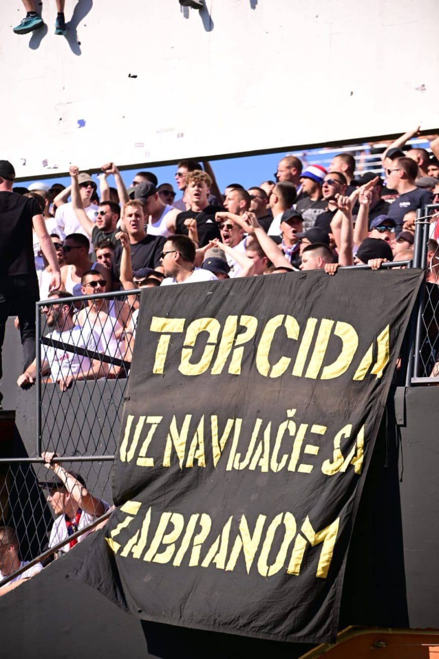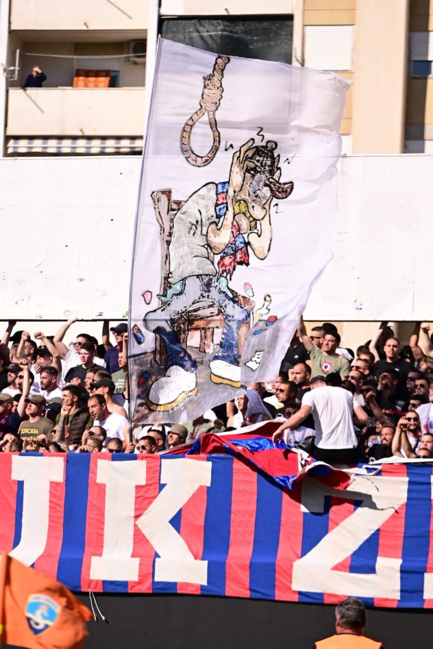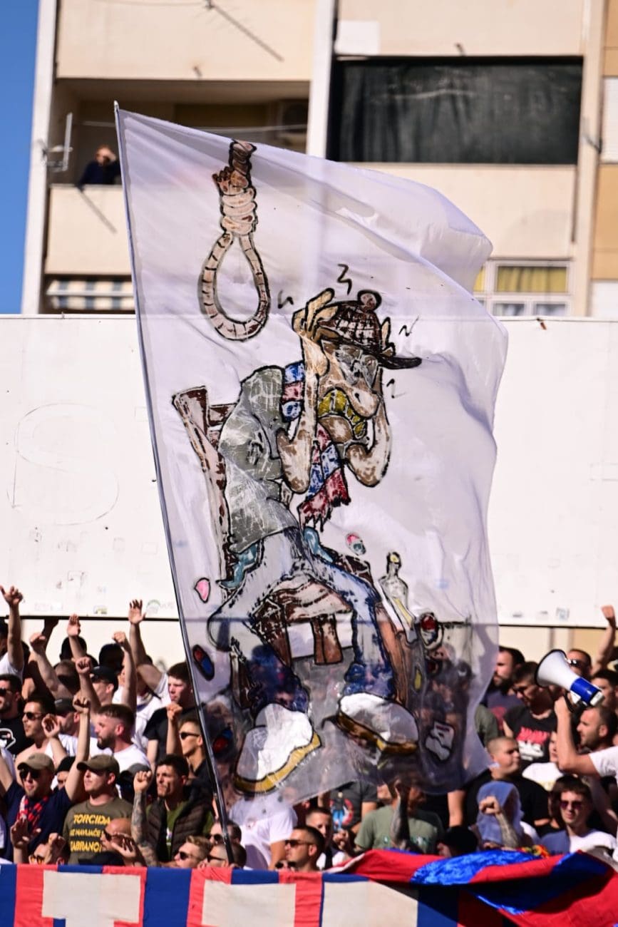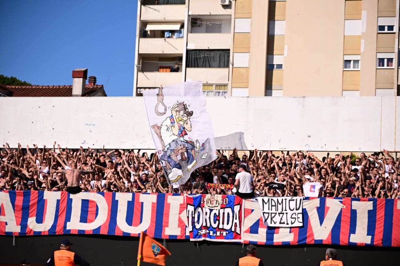 Uoči samog početka susreta, Torcida je istaknula poruku: "KONOP JE U GEPEKU, NORMABELI U DŽEPU, / SPREMNI SMO NA SVE, OČEKUJEMO NIŠTA.", aludirajući na glupo prosute bodove Hajduka u utakmicama koje su dodatno zakomplicirale borbu za prvaka.