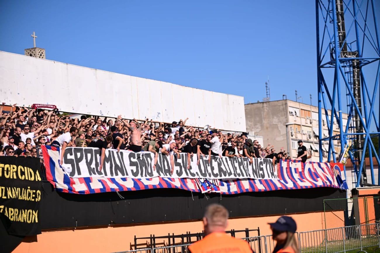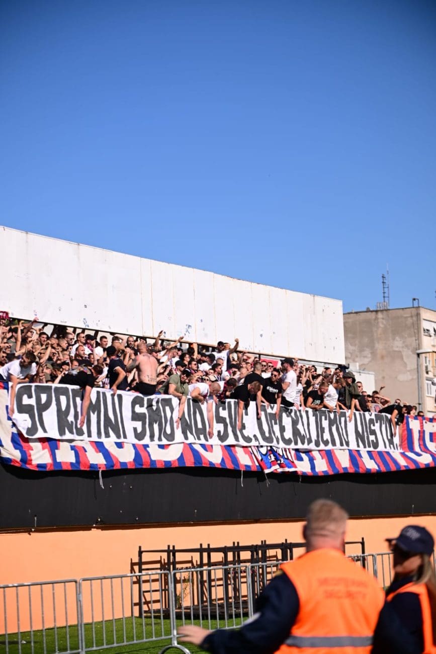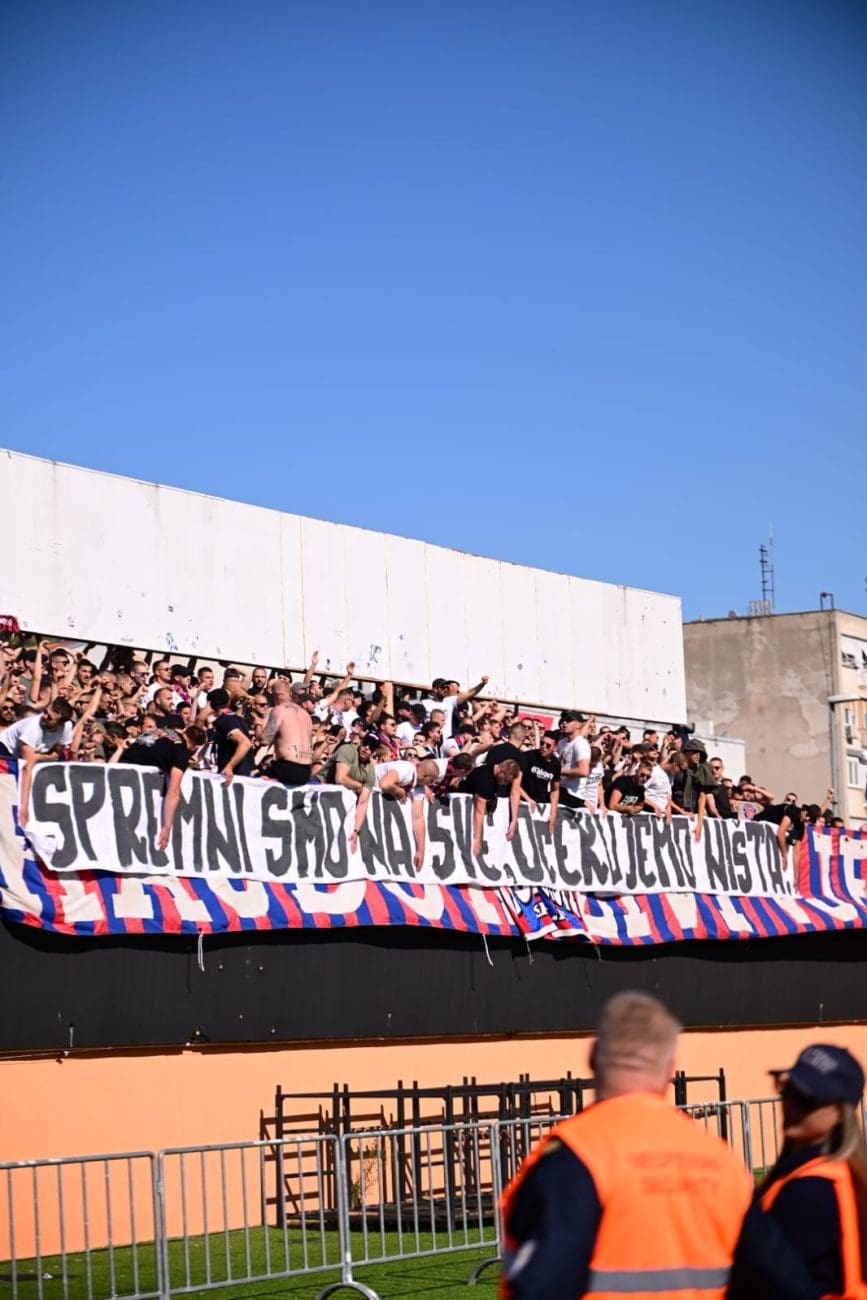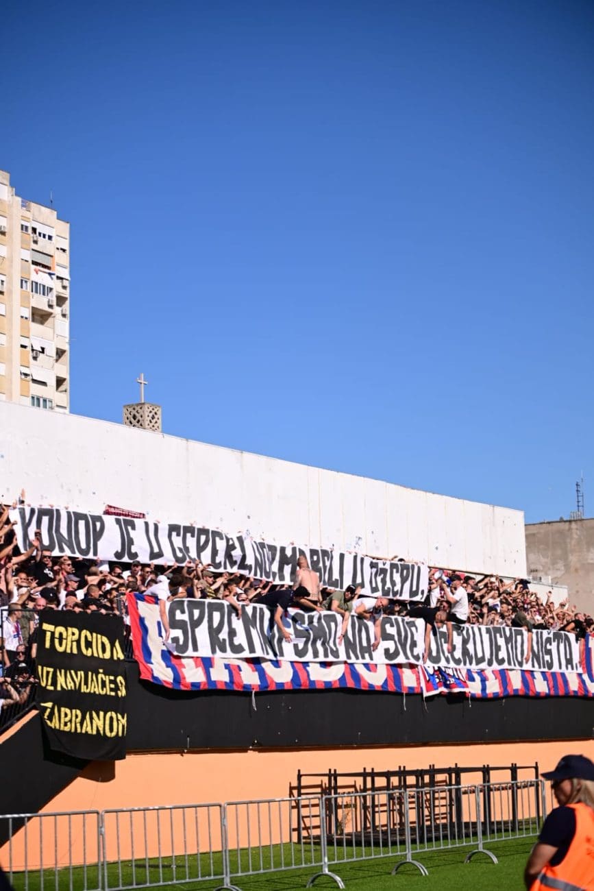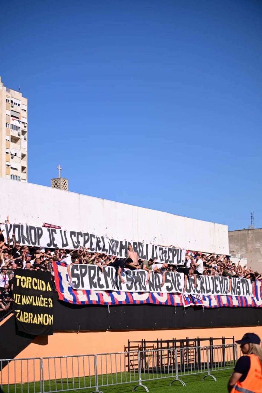 Uoči samog početka susreta, Torcida je istaknula poruku: "KONOP JE U GEPEKU, NORMABELI U DŽEPU, / SPREMNI SMO NA SVE, OČEKUJEMO NIŠTA.", aludirajući na glupo prosute bodove Hajduka u utakmicama koje su dodatno zakomplicirale borbu za prvaka.