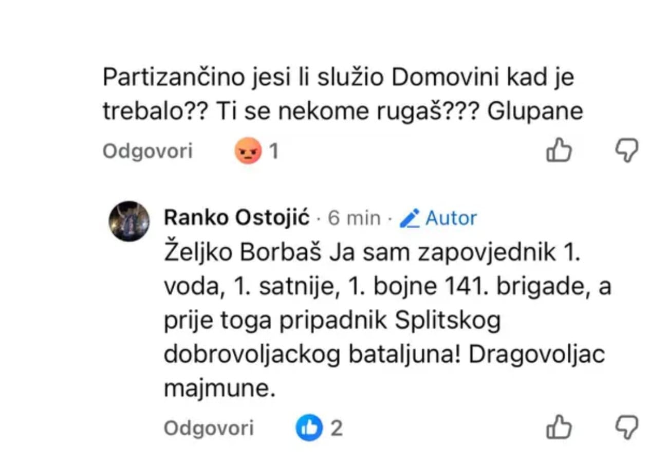 „Partizančino, jesi li služio Domovini kada je trebalo? Ti se nekome rugaš? Glupane“, napisao je jedan od korisnika.