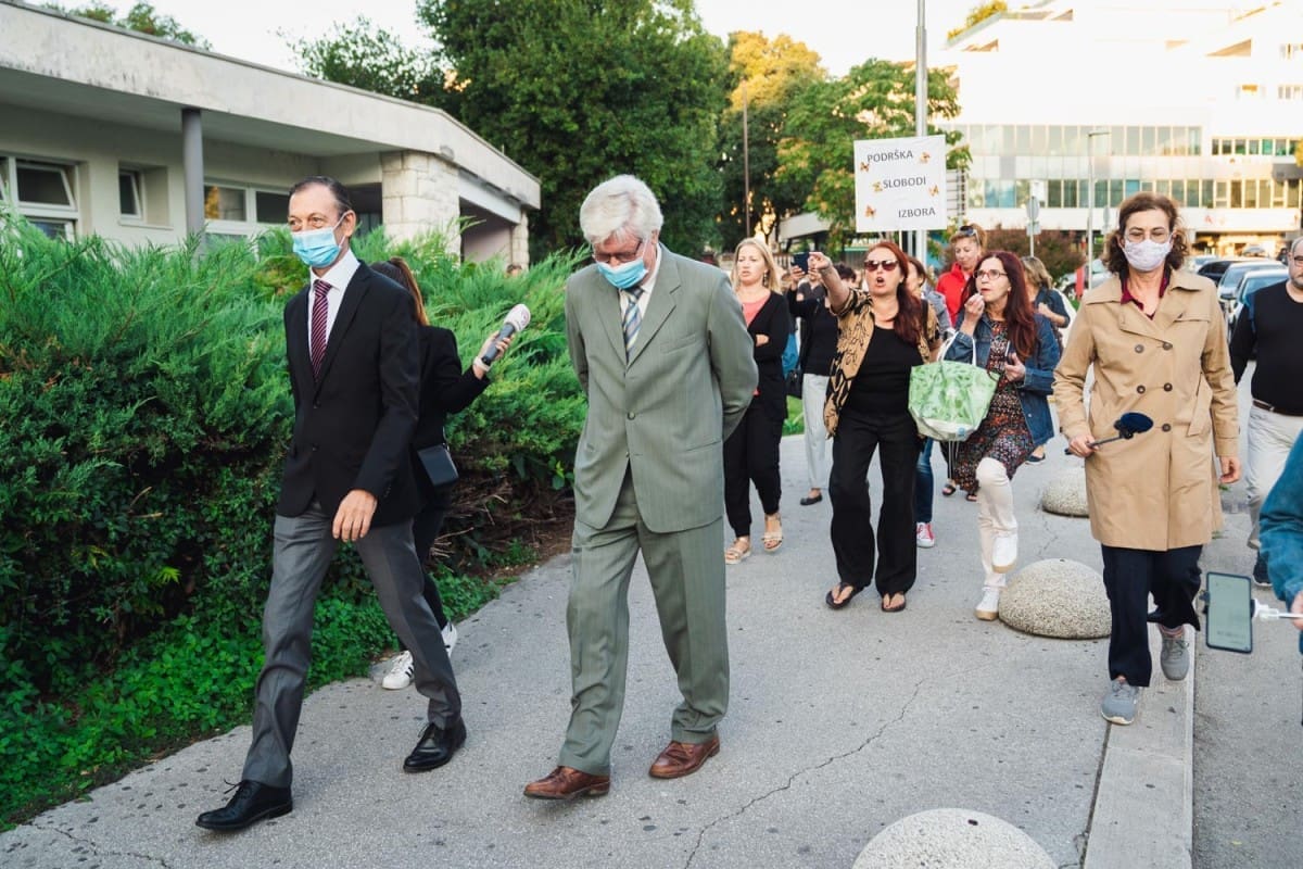 "Prodane duše, bojite li se Boga", "Lažete sve, sramite se", "Sotone, prodane duše", urlali su prosvjednici dok su ispred njih prolazili Meštrović i Bagatin.