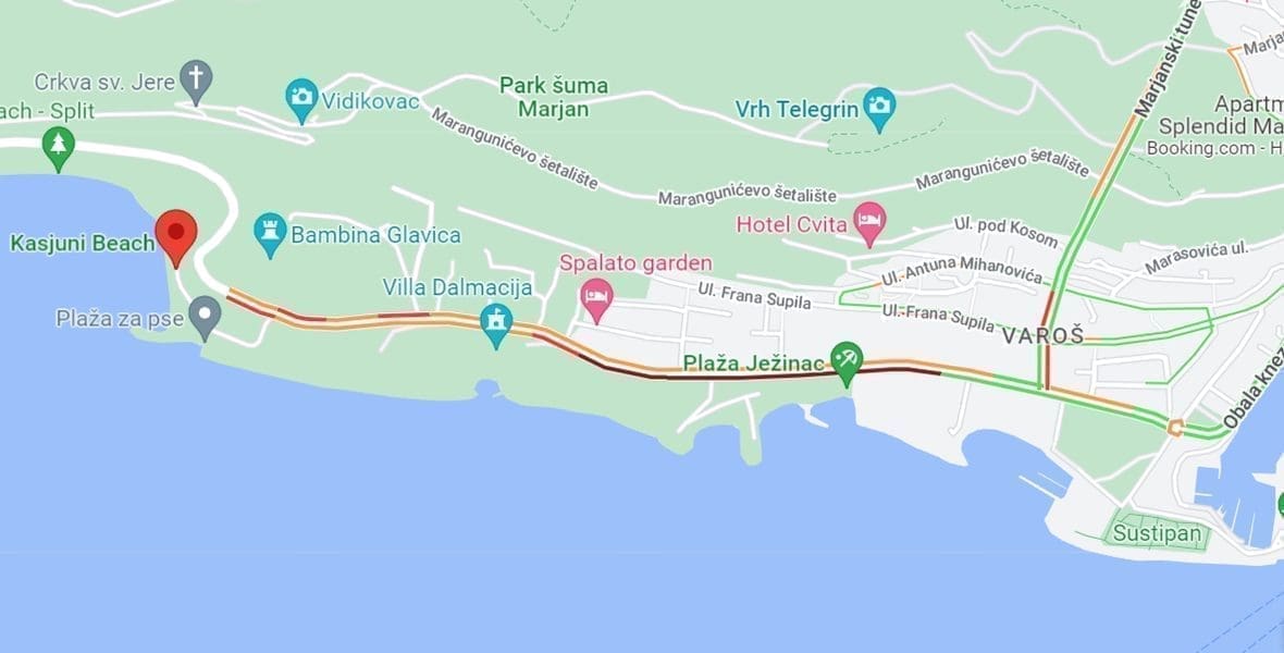 "Desetak minuta prije 13 sati smo krenuli prema izlazu s plaže Kašjuni. No, ubrzo nakon toga smo naletjeli na veliku kolonu vozila, gužva je bila nevjerojatna. Zaustavila sam auto i otišla sam do policijskog službenika. On nam je rekao da ne možemo proći zbog jednog sportskog događaja koji se upravo održava", prepričava za Dalmaciju Danas Splićanka Antonia.