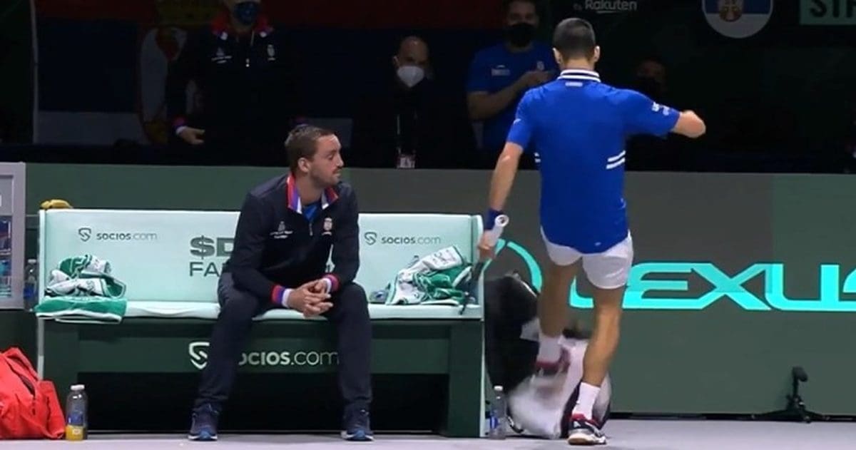 Novak Đoković poznat je po tome što tijekom mečeva u kojima mu rezultat ne ide na ruku nerijetko izgubi živce pa razbija rekete, baca opremu ili čak vrijeđa gledatelje. Slično se dogodilo i u meču parova s Hrvatskom.